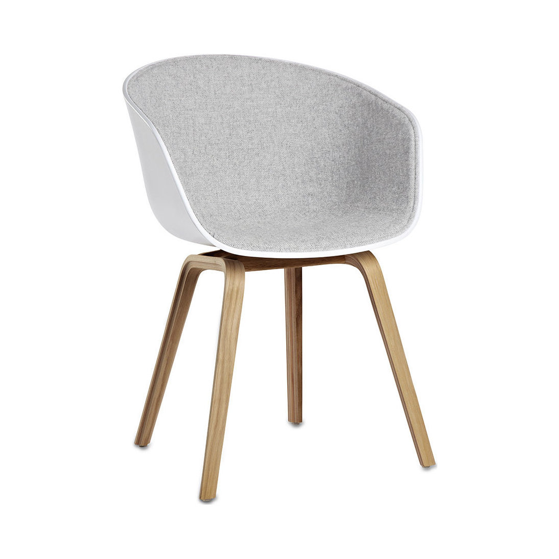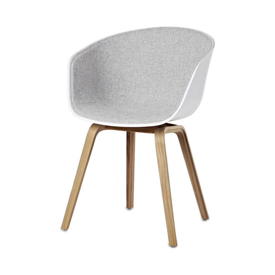 Update your interior with this About A Chair AAC22 chair from HAY. An elegant profile has been created using the combination of a striking polypropylene seat shell and four oak wood legs, adding style to any room this chair is placed in. Featuring a complementing grey upholstered seat it is available in three colour combinations, making this piece of furniture a beautiful addition to any home.
