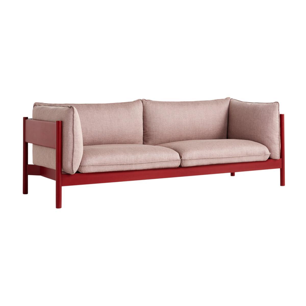 The Arbour three-seater sofa from HAY fuses Scandinavian aesthetics with high comfort and great durability. With large seat cushions offering balanced proportions and identical side cushions, this design offers a sense of harmony and multiple comfortable sitting or lying postilions. The FSC-certified wooden frame creates a strong yet elegant profile, and there are many upholstery options available for you to find your perfect style. Key features: * 3 seater sofa * Frame material: FSC-certified wood & plywood, with elastic webbing * Cushion material: CMHR foam core with foam and feather mix * Dimensions: 220xD87xH75cm * Legs: solid beech water-base lacquered wine red * Upholstered in red RE-WOOL 648 fabric * Designed by Andreas Engesvik and Daniel Rybakken