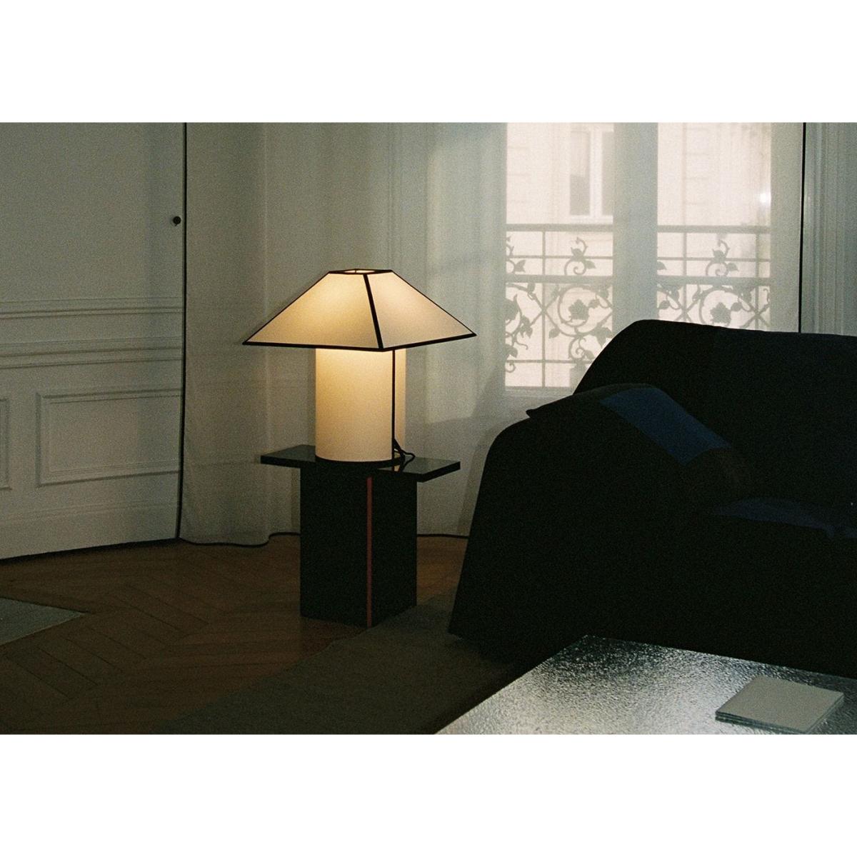 Designed by Ana Kraš for HAY, the Ava Table Lamp combines an archetypal lamp shape with a bold, graphic design, creating a contemporary take on a classic lamp. Crafted from ECOPET™ derived from recycled PET plastic, the semi-translucent shade features a paper-like quality that is offset by contrasting fabric piping. Ava’s simple yet striking visual presence and soft, ambient glow allow it to integrate seamlessly into numerous home spaces. The table lamp is accompanied by HAY’s Common Cord Set.