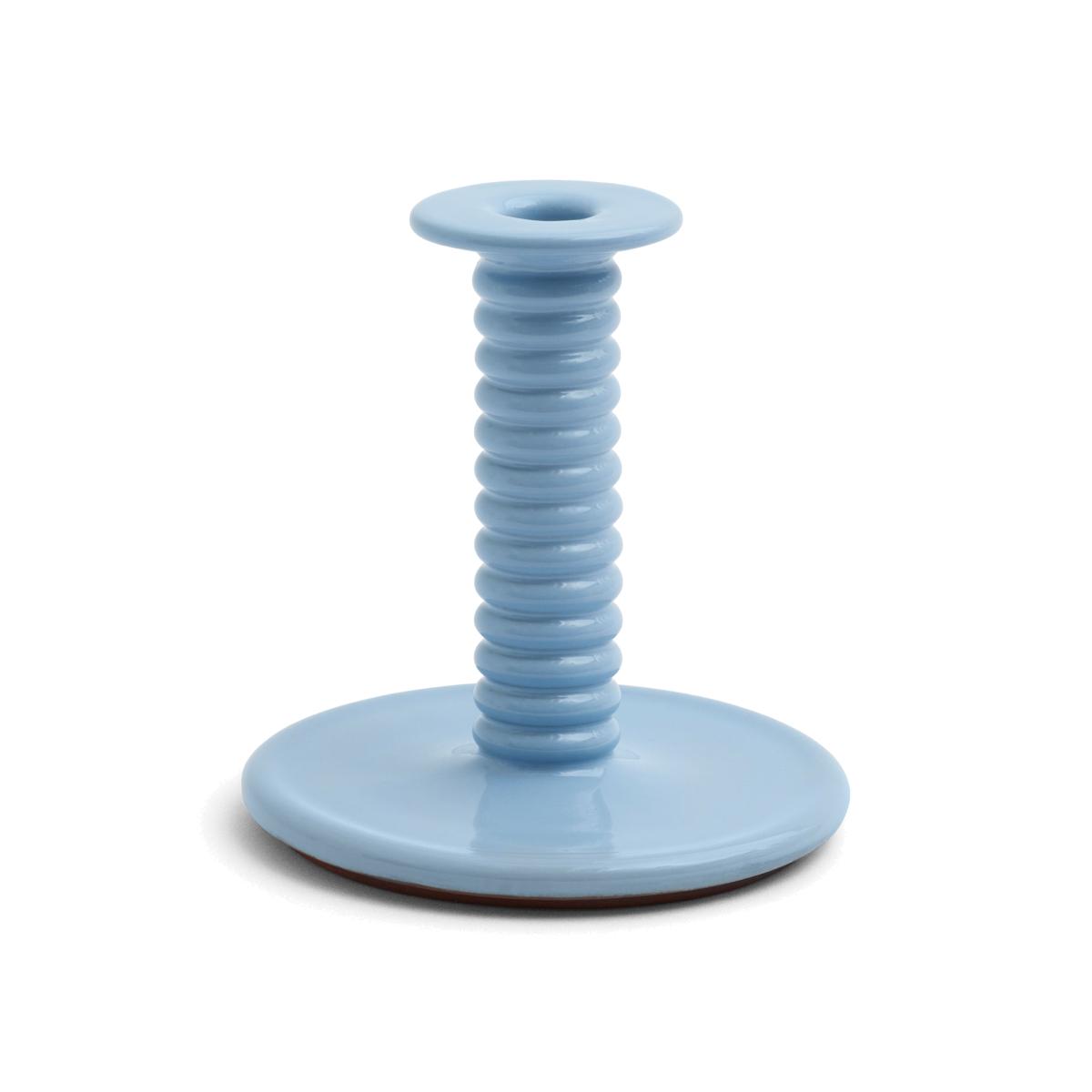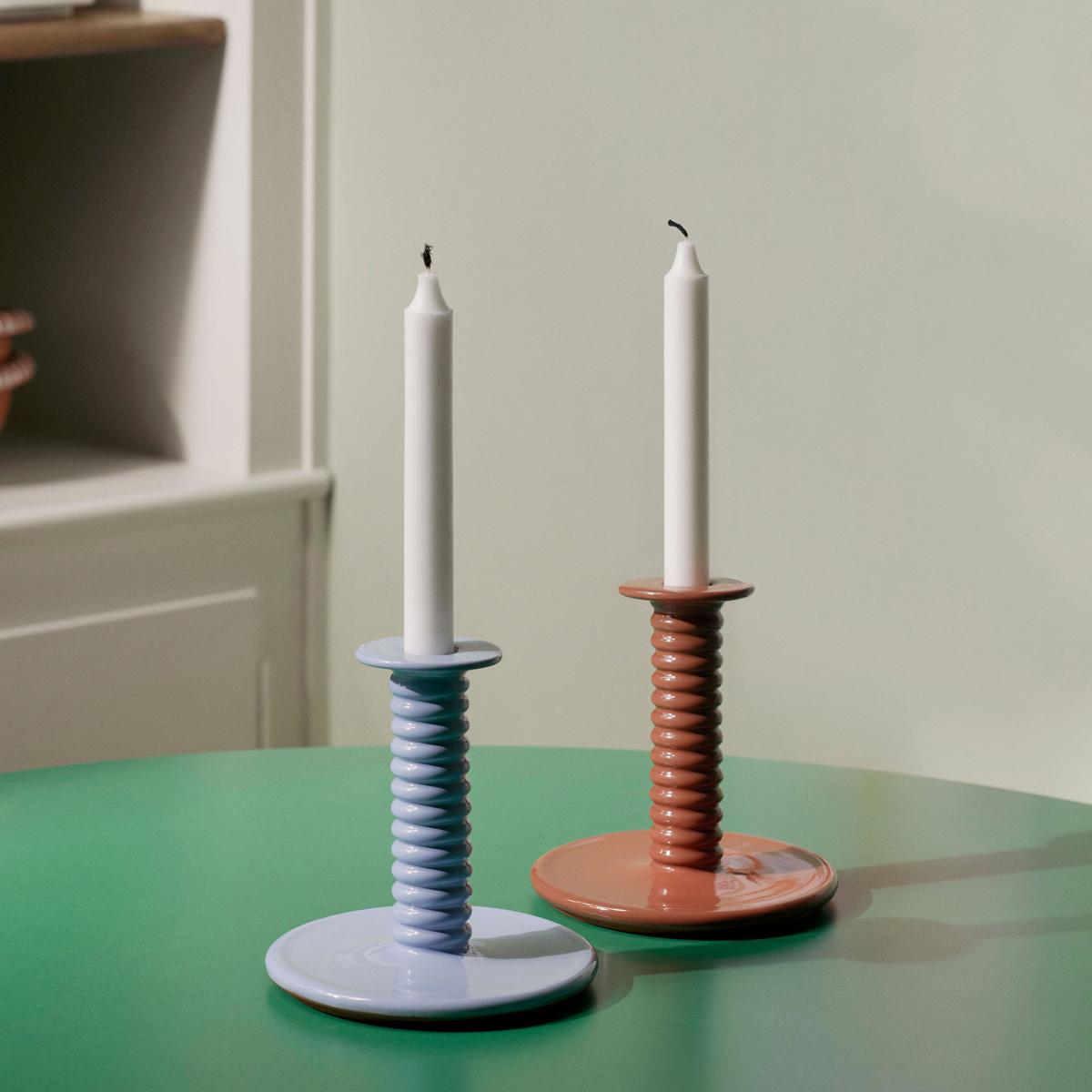 I love the simple, sculptural shape of the blue candleholder - it adds a subtle pop of colour without overpowering a space. It works particularly well in minimalist or Scandinavian-inspired interiors, where clean lines and soft hues create a calming atmosphere. For styling, consider pairing it with neutral tableware or other pastel accessories to create a cohesive look, or use it as a statement piece on a mantel or coffee table. Its understated design makes it versatile; it can be dressed up with taller candles for a more formal setting, or paired with shorter tea lights for a casual, everyday vignette.