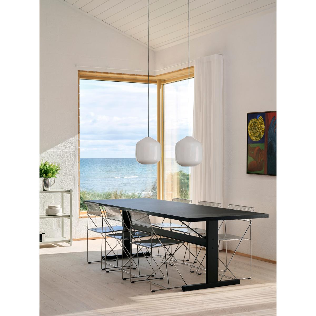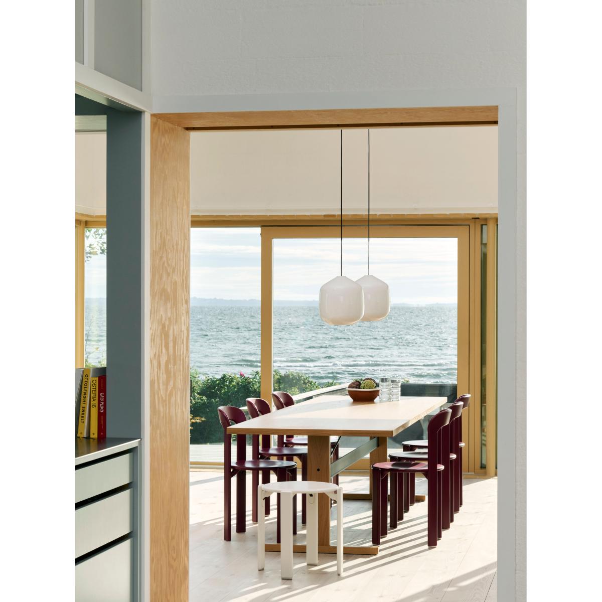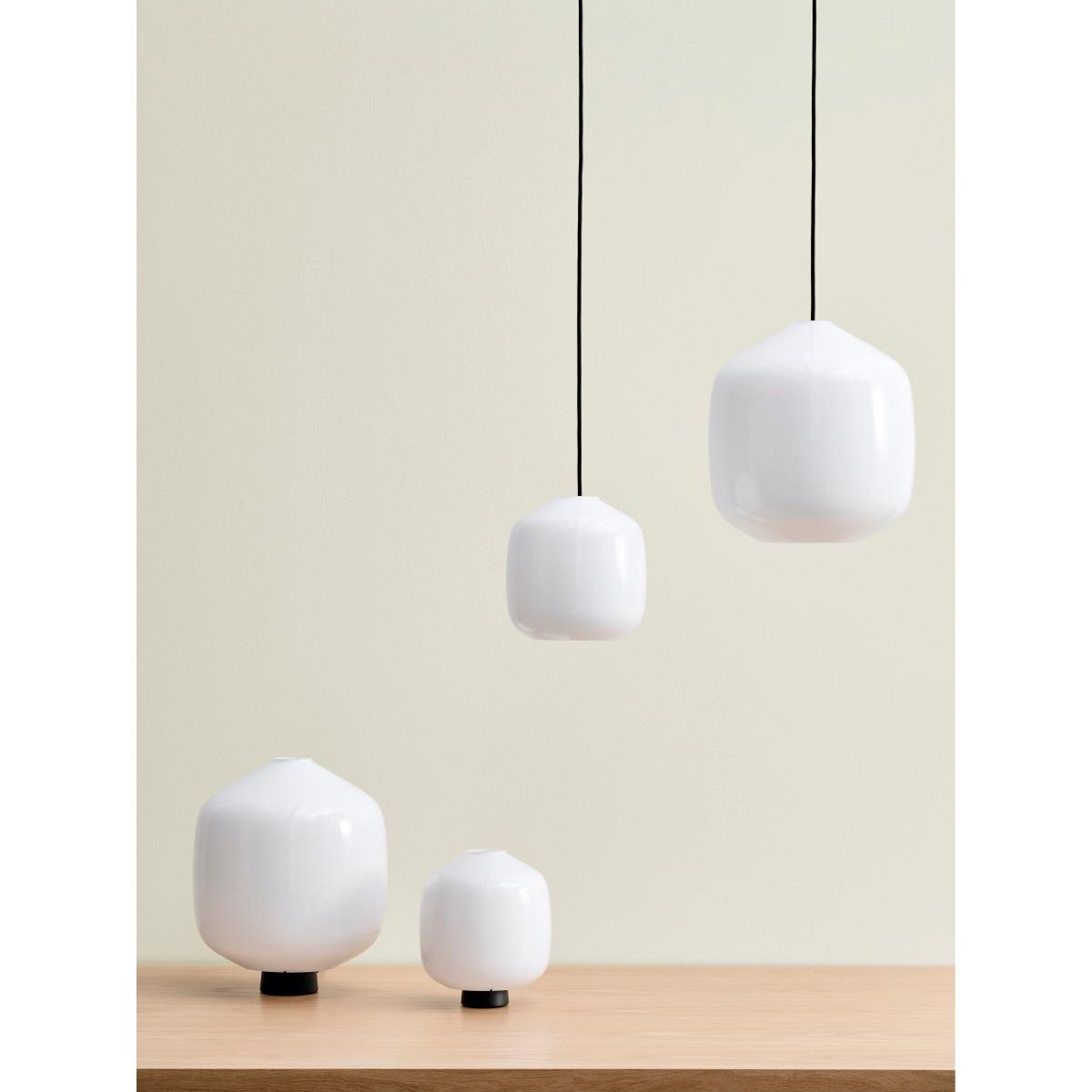 The Buoy pendant lamp Ø30 cm from HAY combines aesthetics with functionality and is designed by Aspekt Office. Made of opal glass, it provides a soft and atmospheric lighting. Perfect for versatile use in different rooms and interiors and is available in two sizes with various colour options for the cords.