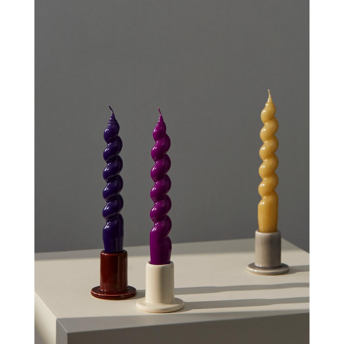 I love the spiral candle for its playful yet sleek form - it’s a great way to add colour and interest to both modern and eclectic interiors. The fuchsia hue works particularly well in minimalist schemes to inject vibrancy, but it can also serve as a statement piece in more subdued palettes. Practical styling tips include displaying it in simple holders or grouping with neutral candles for a balanced look, or using it as a standalone feature in a clear glass vessel. Its bold colour and sculptural shape make it perfect for decorating dining tables, sideboards, or even as a focal point in a mantel arrangement. Overall, it’s a versatile piece that brings both colour and texture to a space without overwhelming it.