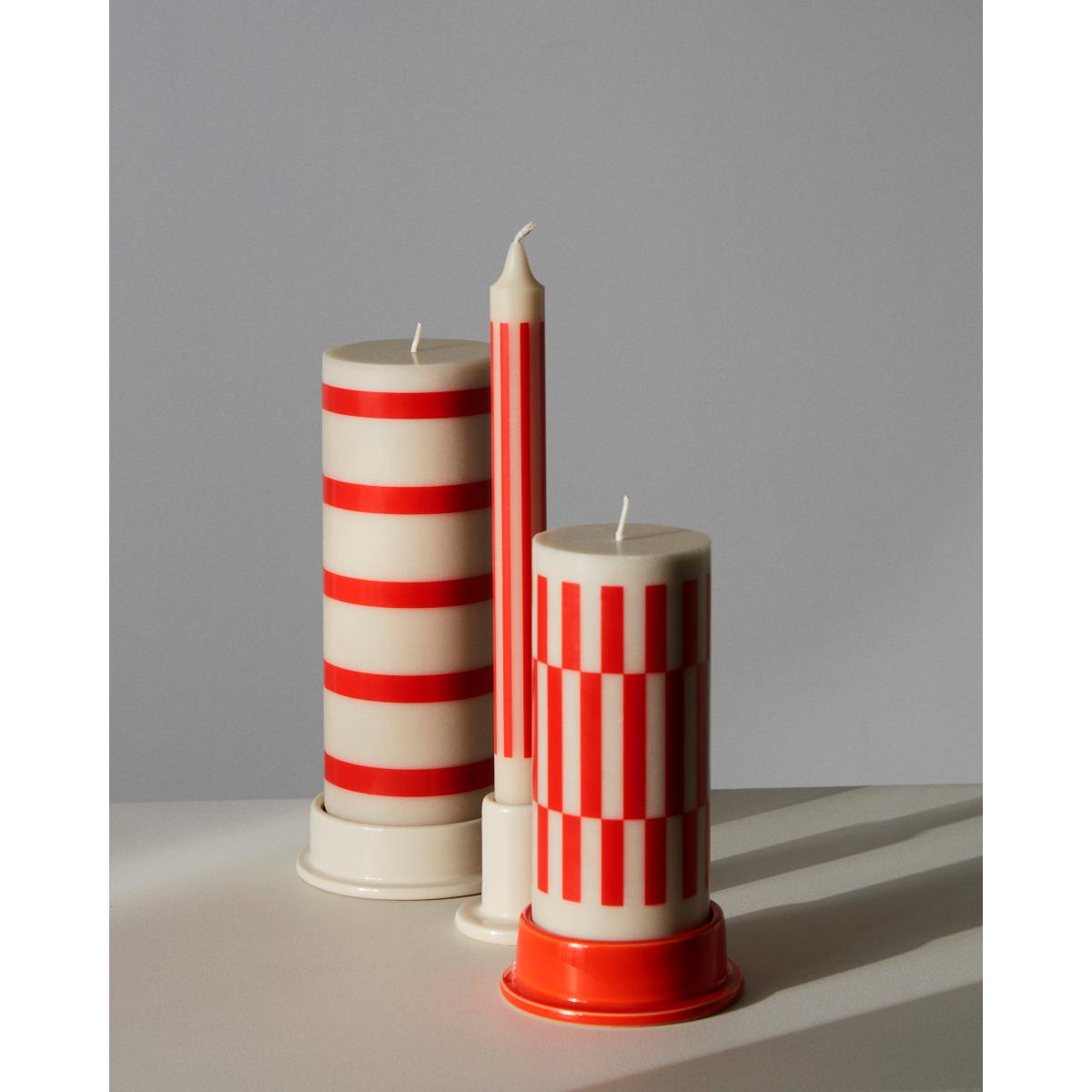 The red candle holder makes a versatile and bold statement piece that works well in both modern and Scandinavian-inspired interiors. Its compact size makes it ideal for centrepieces on dining tables or sideboards, adding warmth and colour without overwhelming the space. I love mixing it with muted tones or neutrals to create a pop of colour, and it can be grouped with other smaller holders for a layered, curated look. For practical styling tips, consider pairing it with textured textiles like linen or wool, or using it alongside green foliage or natural materials to enhance its earthy appeal. Overall, it's a simple yet impactful addition that effortlessly elevates everyday candlelight.