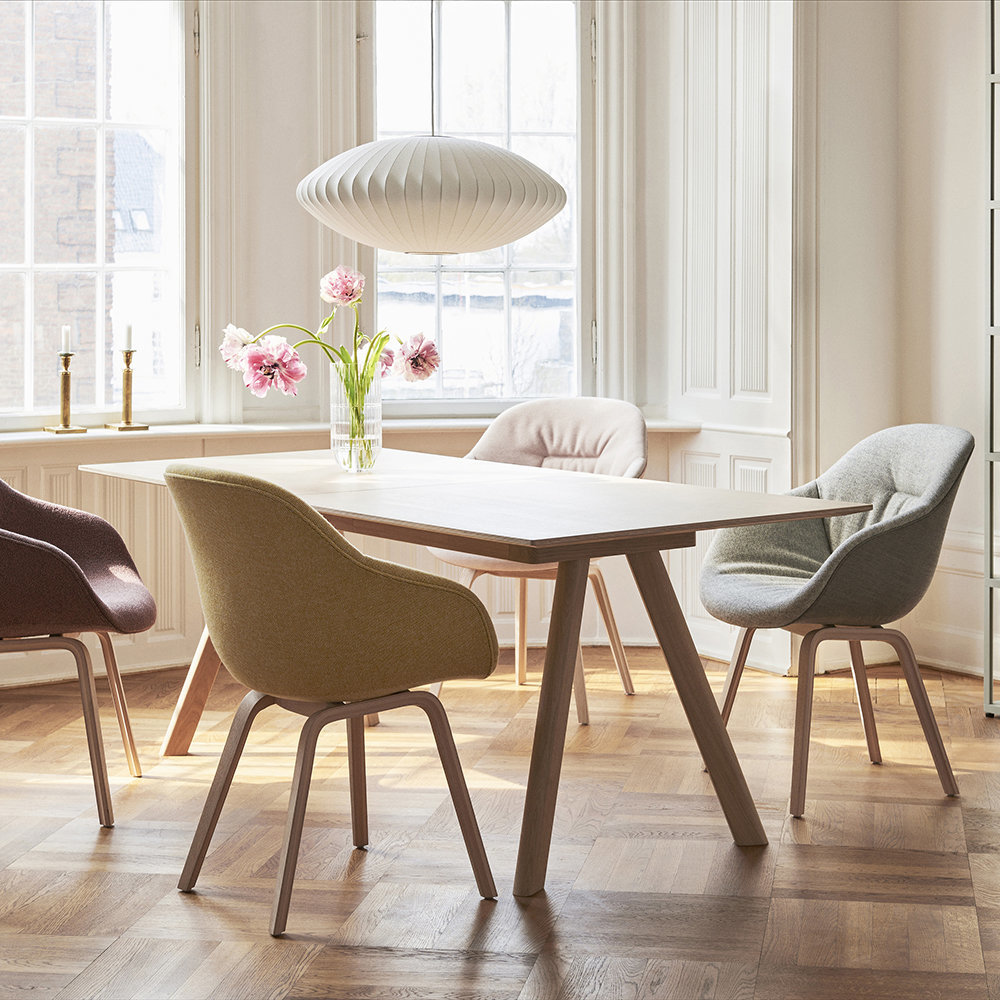 Bring classic aesthetics into a modern context with the CP30 Table from HAY. Designed by the Bouroullec brothers, the simple yet graceful asymmetrical legs complement the streamlined tabletop perfectly. Crafted with an oak frame it features a linoleum tabletop in a classic white. A functional, uncluttered design, it’s ideal for using as a desk or dining table and it’s available in two sizes.