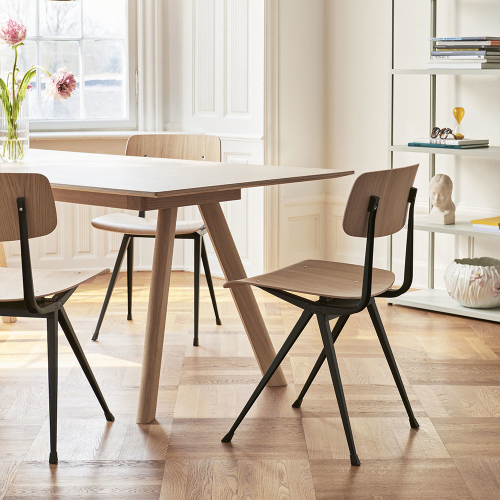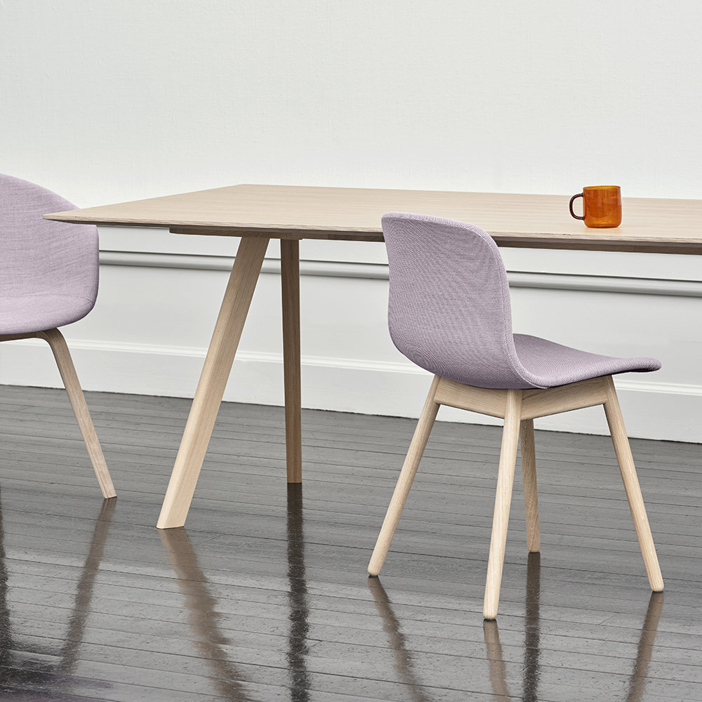 Bring classic aesthetics into a modern context with the CP30 Table from HAY. Designed by the Bouroullec brothers, the simple yet graceful asymmetrical legs complement the streamlined tabletop perfectly. Crafted with an oak frame it features a linoleum tabletop in a classic white. A functional, uncluttered design, it’s ideal for using as a desk or dining table and it’s available in two sizes.