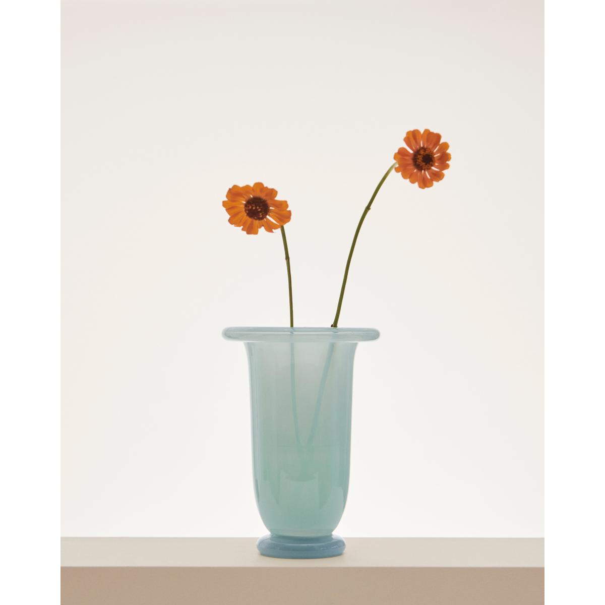 I love this ice blue vase for its understated elegance and versatile colour palette. It works particularly well in minimalist or Scandinavian interiors, adding a soft splash of colour without overpowering the space. The medium size makes it practical for both single statement stems or cosy floral arrangements, and its simple, clean lines allow it to blend seamlessly with other decor elements. Tip: for a contemporary look, try pairing it with white or neutral-toned florals, or leave it empty as an accent piece on a console or side table for a fresh, modern touch. Its colour also lends itself nicely to layered arrangements with greenery or seasonal blooms, making it a flexible choice for various styling moods.