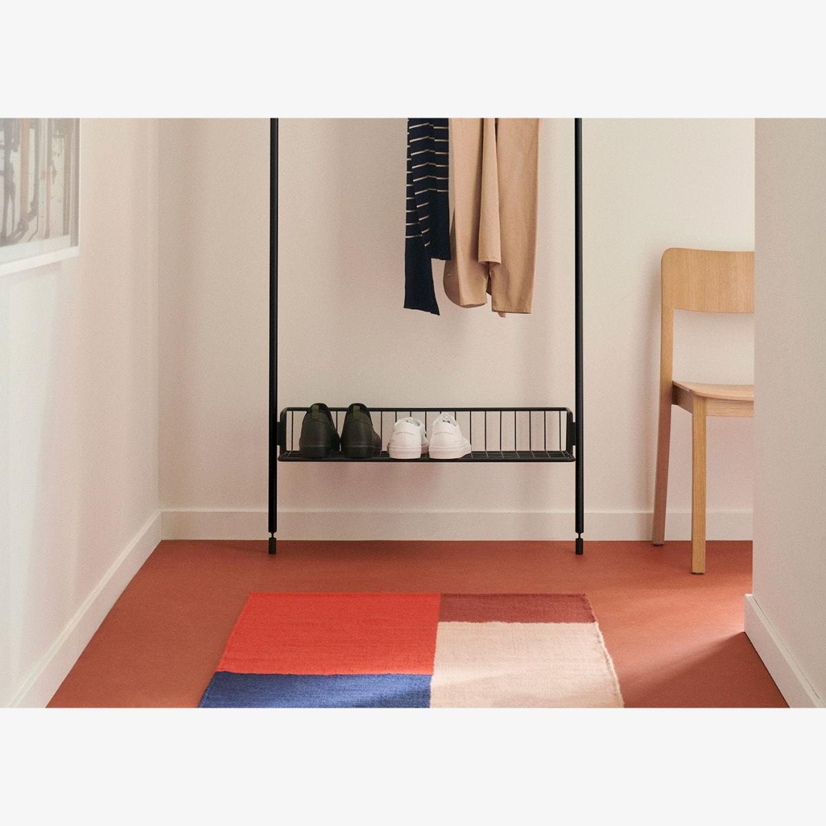 Inspired by his decorative woven wall art, Ethan Cook's Flat Works is a series of handwoven kelim rugs designed for HAY. Featuring a geometric abstract design, the rugs translate the designer's bold colour-blocked artwork into practical and decorative items.