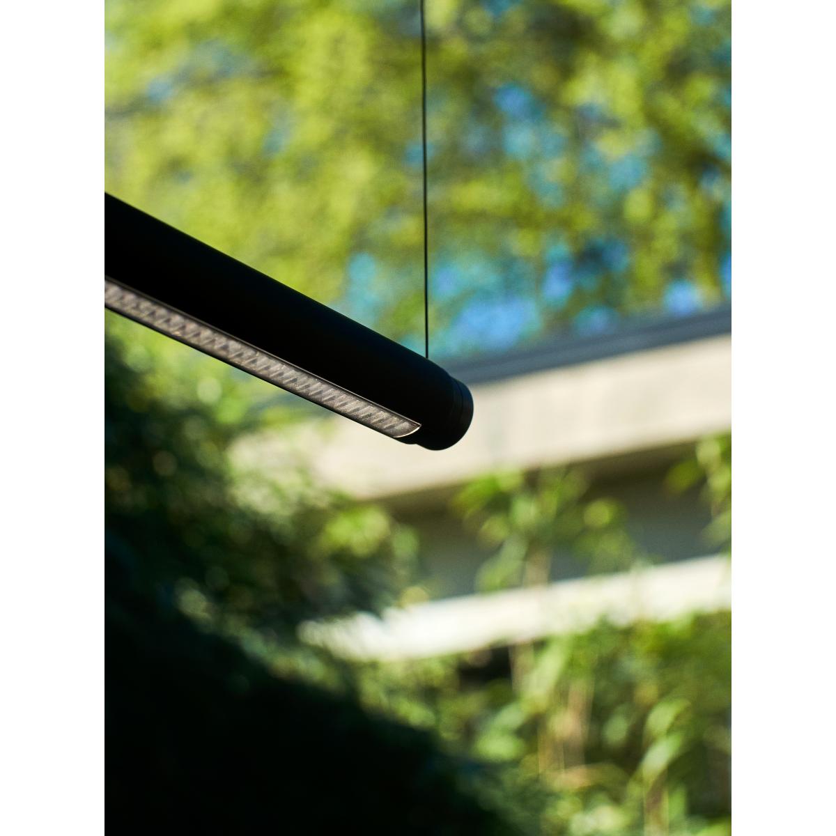 Factor Linear Suspension ceiling lamp 1500 Diffused from Danish HAY is a tubular lamp that can be adjusted in 360 degrees, which allows you to choose whether you want to use it with direct or indirect light. Dimitri Bähler has designed the dimmable lamp which, thanks to its warm diffused light, fits perfectly over the dining table or kitchen island.