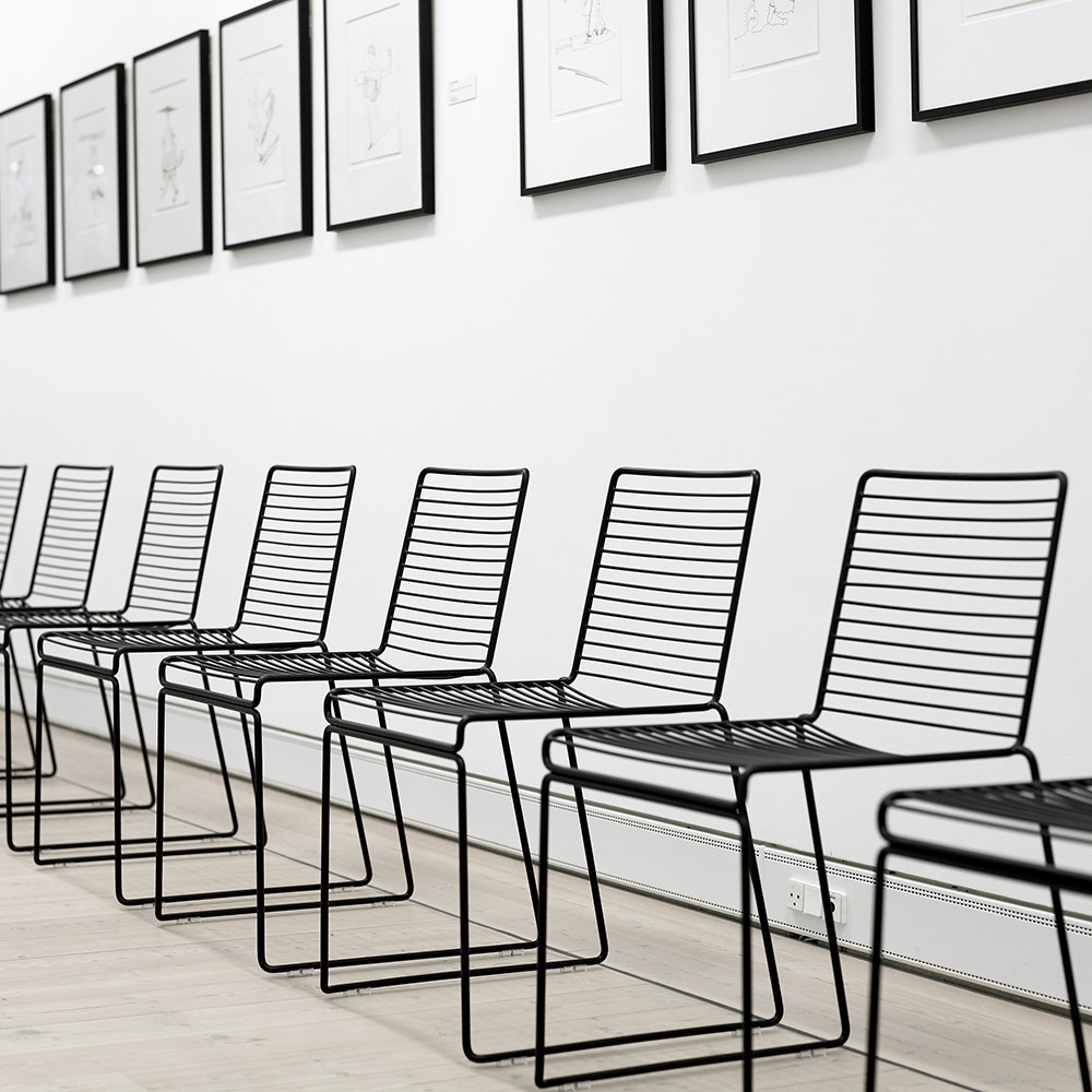 Bring minimalistic style to the home with this Hee Dining Chair from HAY. Crafted from galvanised steel available in four colours, its open wired structure promotes spacious design wherever it is placed. Finished with a powder coating its surface is rust resistant meaning this chair perfect for use both indoors and outside, making it a fabulous addition to any home.