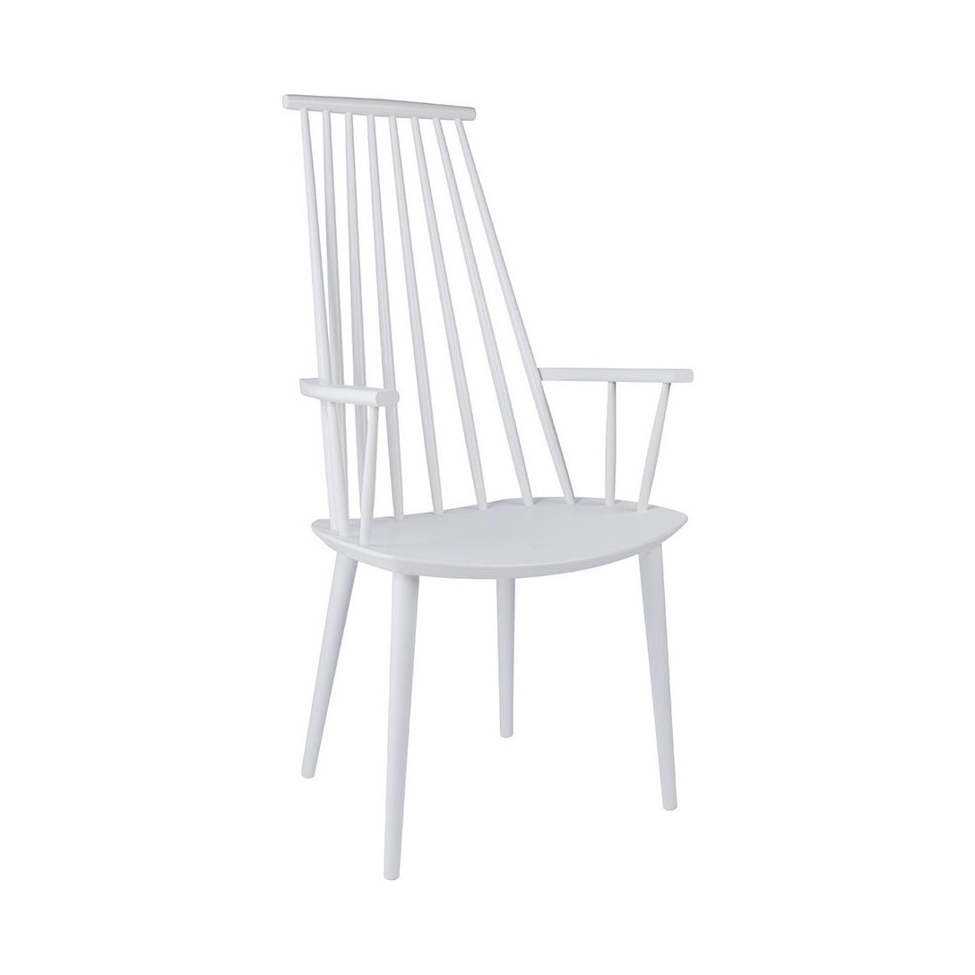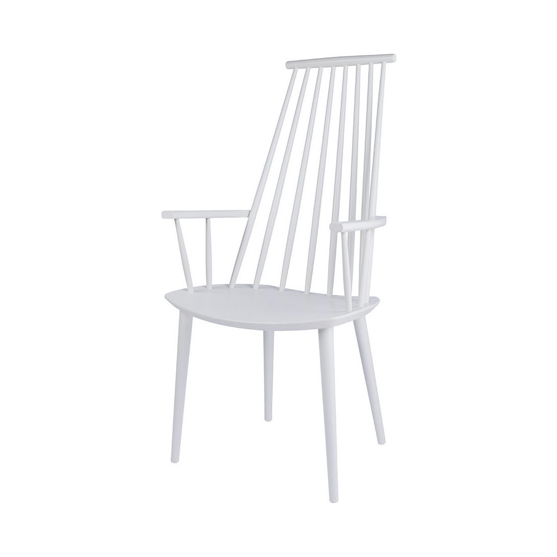 Create a sophisticated dining table with this J110 Chair from HAY. Inspired by Nordic styling this dining chair features a tall, elegant back and slender spindles, and includes incorporated arm rests for added comfort. With its sophisticated profile interplaying with light to create stunning shadows, it is sure to be admired by dinner guests.
