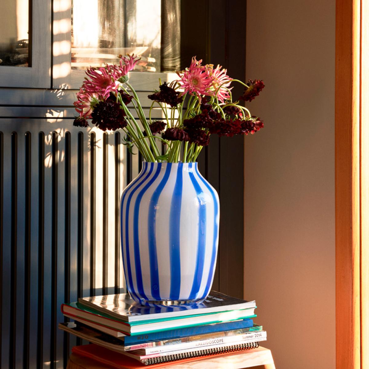 I love this blue glass vase for its clean lines and bold colour. Its tall shape makes it great for showcasing single statement stems or minimalist floral arrangements. It works particularly well in modern or Scandinavian interiors, where its vibrant hue can add a splash of colour without overwhelming the space. For styling tips, try pairing it with neutral-toned vases or greenery to really make the blue pop. It’s also versatile enough to sit on a sideboard or as a centrepiece on a dining table, adding both functionality and visual interest.