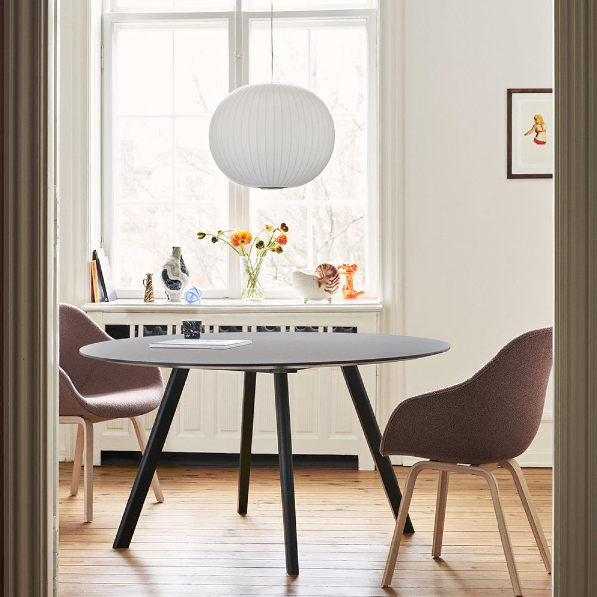 With this Nelson Ball Bubble Pendant you can fill any room with a soft glow. Inspired by a set of silk-covered Swedish hanging lamps, this pendant perfectly round sphere shape will look delightful floating above a table.