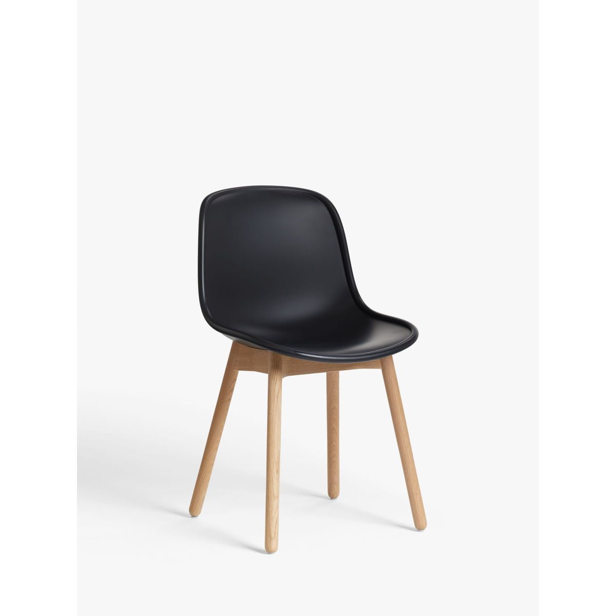 The Neu chair from HAY boasts a perfectly defined profile, thanks to its ergonomically-moulded shell seat that rests on round solid oak legs. The tactile and durable finely-grained plastic seat is complemented with rim detailing that gives the design structure and character.;Robust and comfortable, this versatile piece will slot seamlessly into either dining or home office settings.