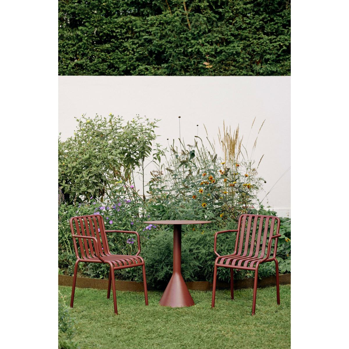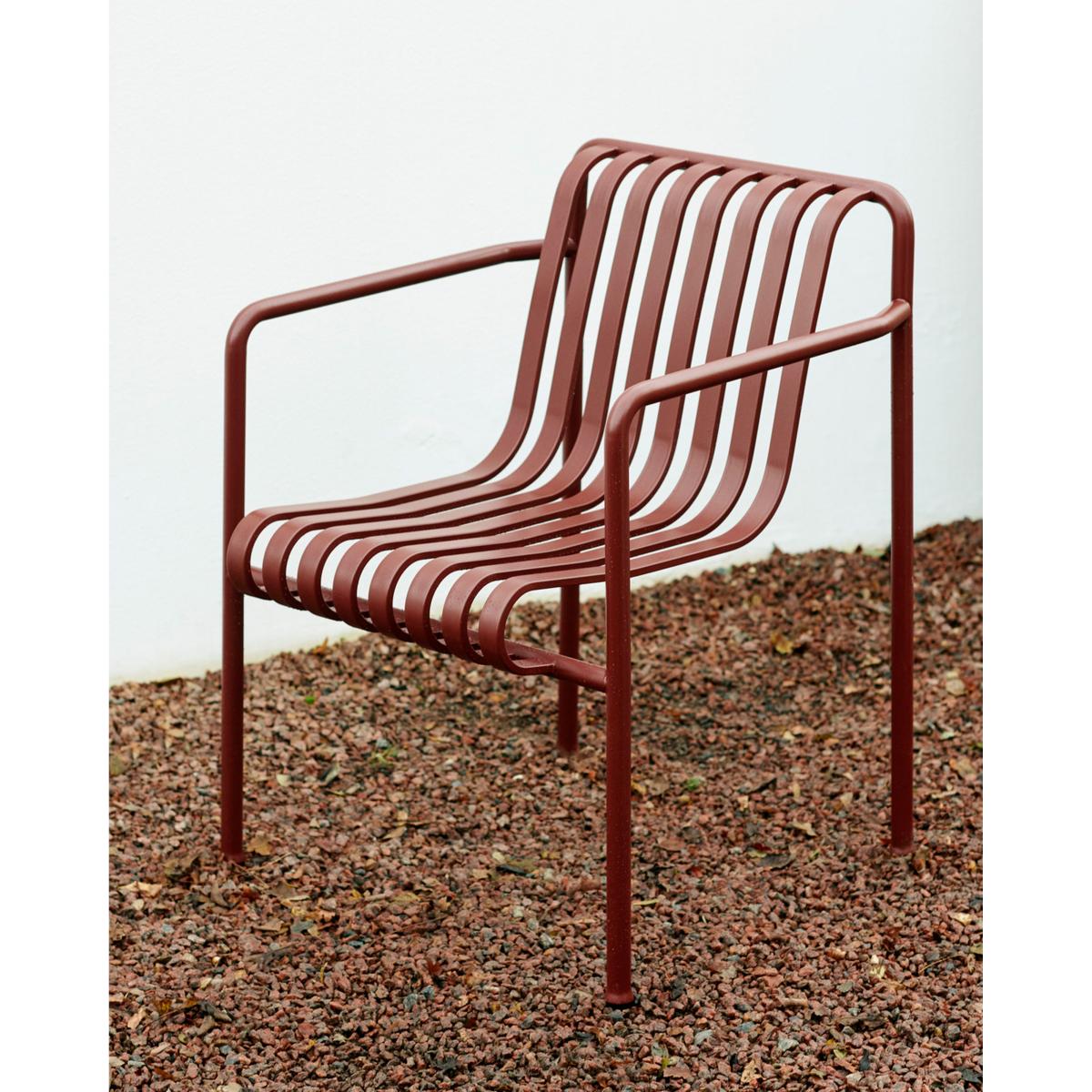Palissade armchair from HAY offers a combination of durability and elegance. Designed by Erwan and Ronan Bouroullec, this chair is part of the Palissade collection and fits into various outdoor environments. It is stackable, which facilitates storage, and constructed to withstand outdoor use, perfect for both gardens and patios.