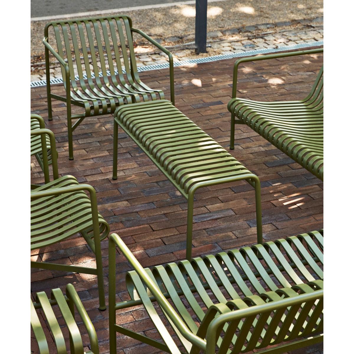 I love the Palissade bench for its clean, modern lines and sturdy construction, making it a versatile addition both indoors and out. Its olive-green finish lends itself well to contemporary or Scandinavian-inspired gardens, patios, or even indoor conservatories. Practical styling tips include pairing it with neutral cushions for added comfort, or combining it with other natural materials like wood or rattan for a layered, inviting look. It works especially well in minimalist, industrial, or outdoor setups, where its geometric form can be highlighted without overwhelming the space. Overall, it’s a stylish, functional piece that exudes understated elegance while offering durable outdoor seating.