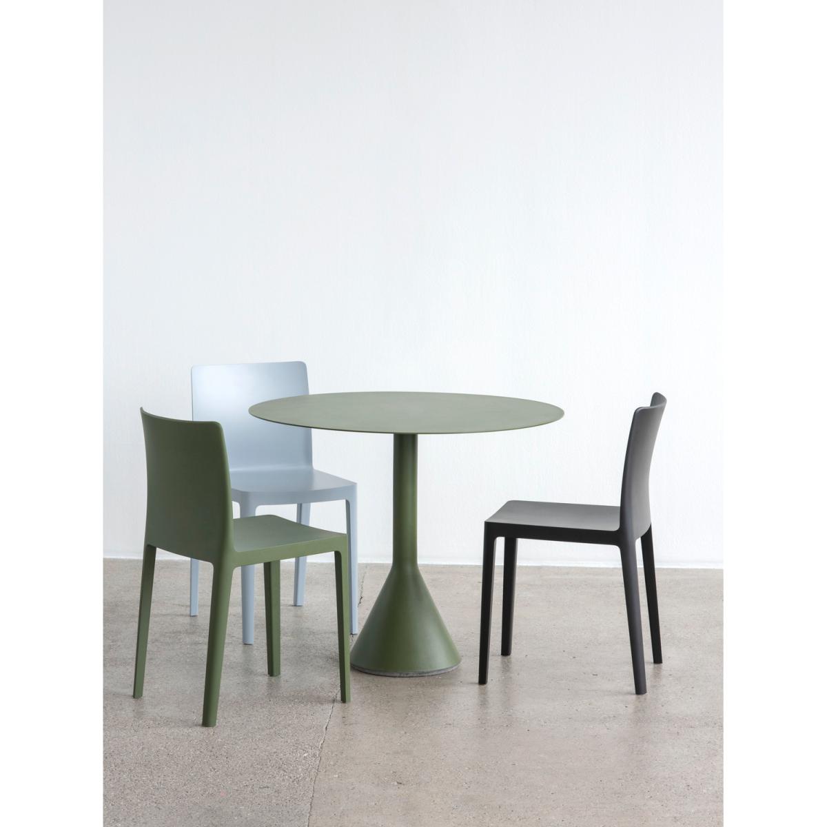 Palissade Cone round coffee table from HAY is part of the Palissade collection, designed by Ronan and Erwan Bouroullec. The table combines a solid base with an ultra-thin tabletop, giving a distinct graphic look. Despite its elegance, it is both strong and stable, making it ideal for outdoor use, whether on the terrace, balcony or in the garden. Available in multiple shapes and colours.