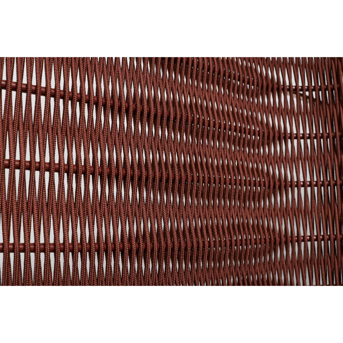 I love this outdoor lounge armchair for its sleek, modern design combined with a hint of Scandinavian style thanks to the woven cord detail. The vibrant iron red colour makes it a statement piece that can brighten up patios, terraces, or conservatories. It works well within contemporary or boho-inspired interiors, adding a pop of colour without overwhelming the space. When styling, consider pairing it with neutral cushions or a patterned throw to soften the look, and place it near greenery or natural textures to highlight its outdoor versatility. Practical tips include using it as a focal point in a corner seating area or pairing it with a compact side table for relaxed, inviting outdoor lounging.