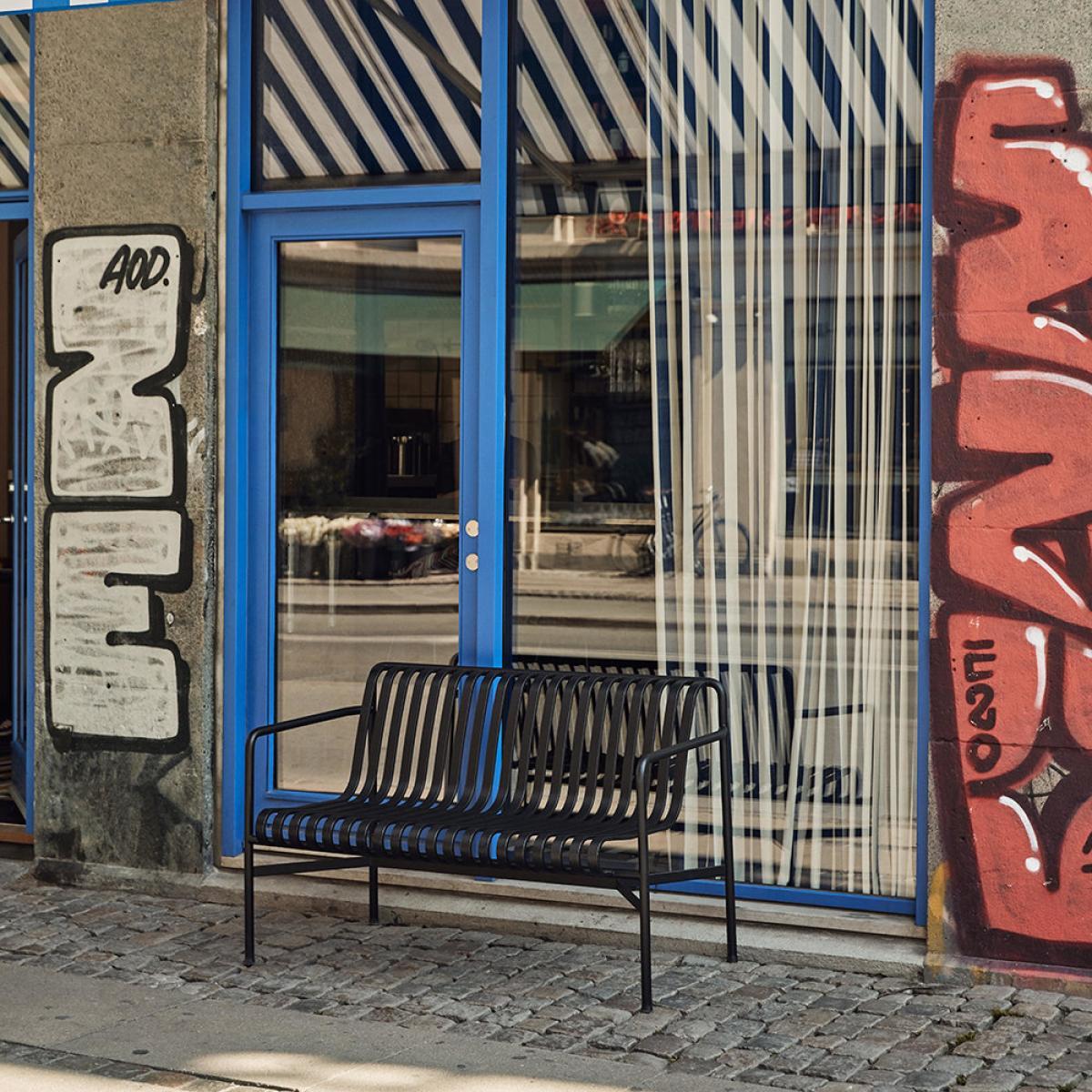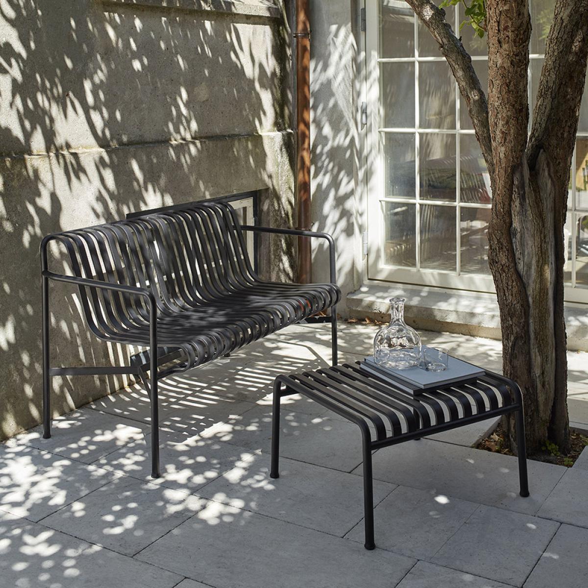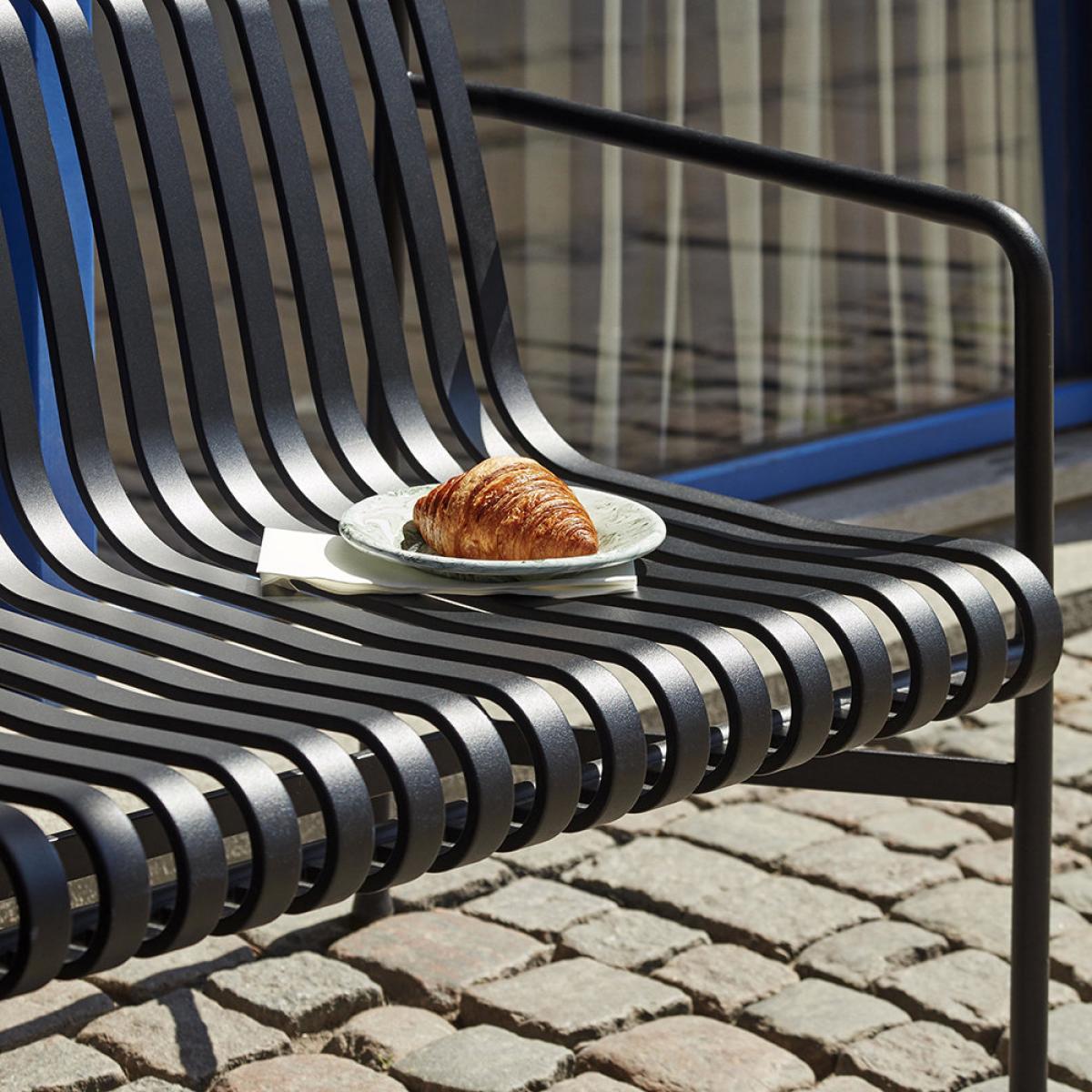 Designed to age beautifully, the Palissade bench from Hay will fit seamlessly into a natural landscape or more urban setting. Designed by French brothers Ronan and Erwan Bouroullec, the Palissade collection is crafted from power coated steel and is available in olive or anthracite colour finish. From terrace to balcony or sprawling garden, the symmetrical geometry of the Palissade bench will bring form and function to any space.