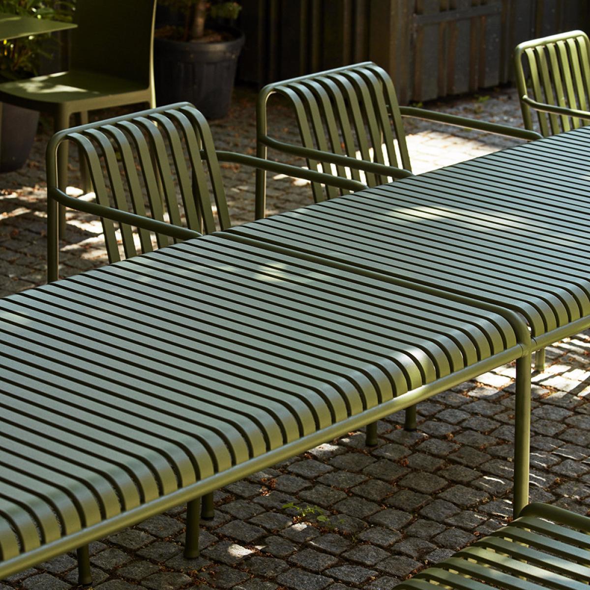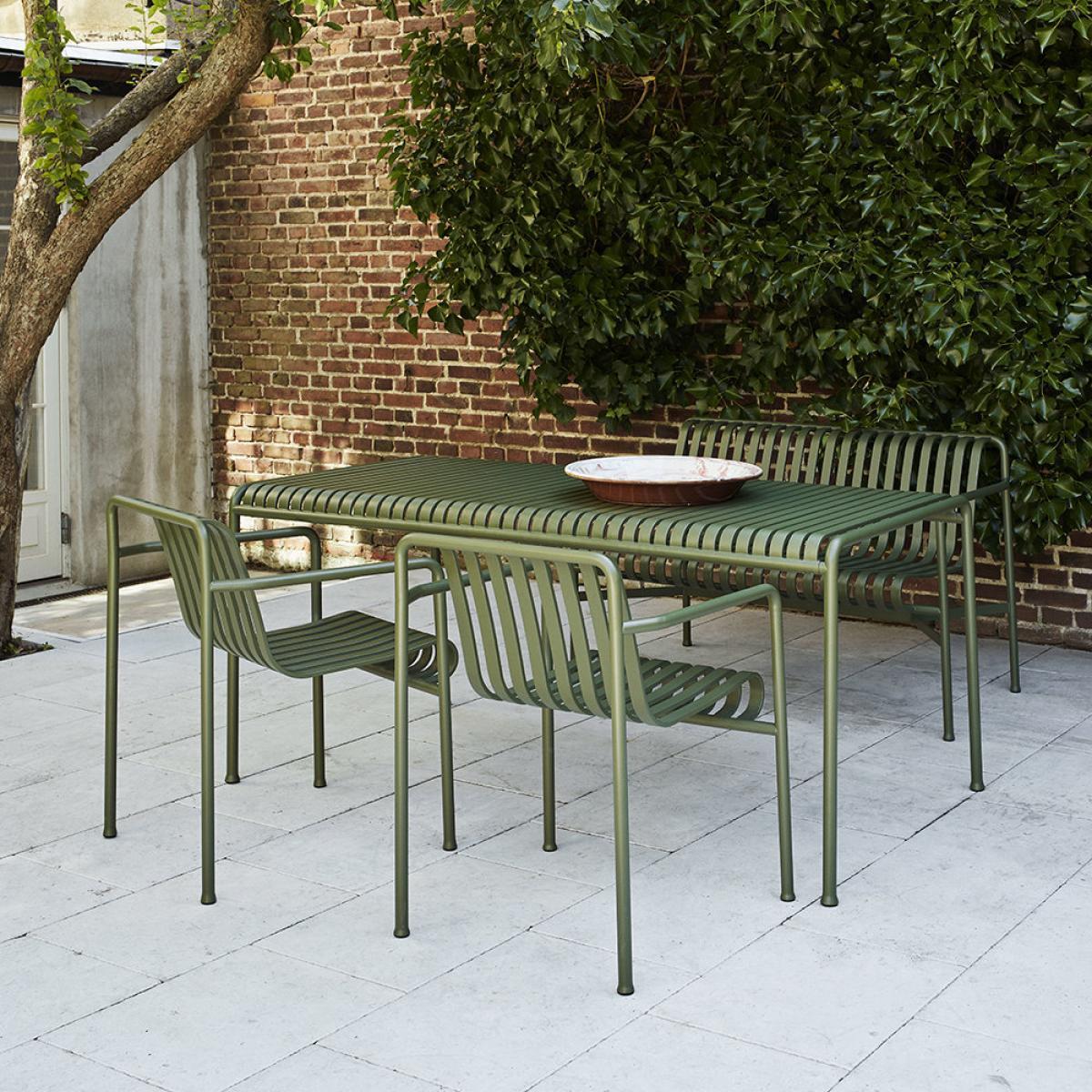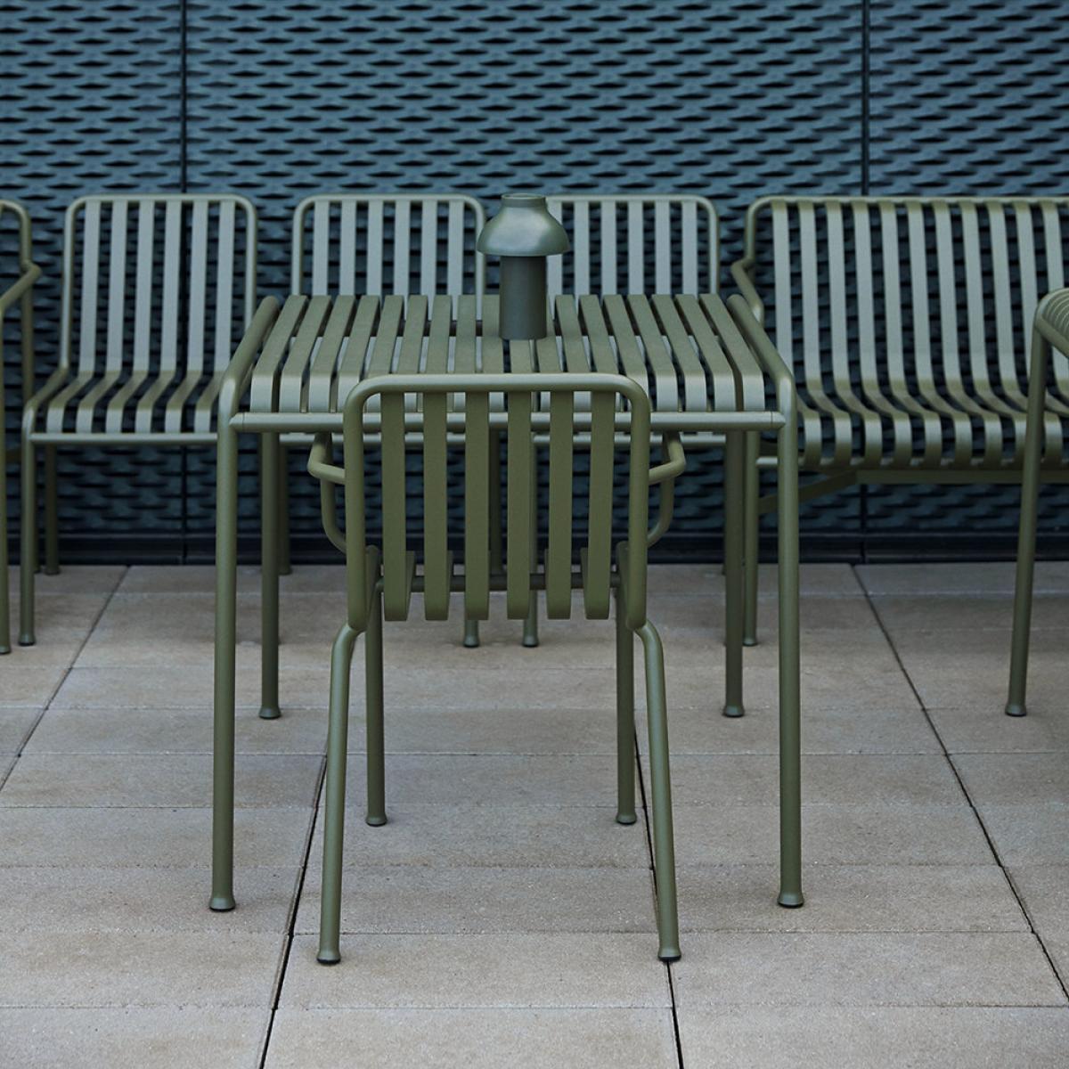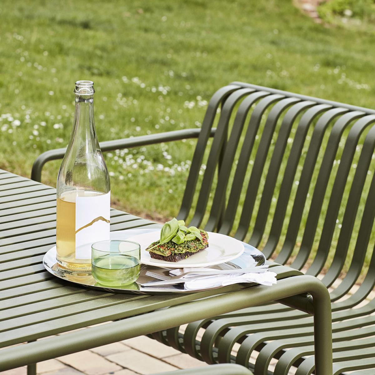 Designed to age beautifully, the Palissade table from Hay will fit seamlessly into a natural landscape or more urban setting. Designed by French brothers Ronan and Erwan Bouroullec, the Palissade collection is crafted from power coated steel and is available in olive or anthracite colour finish. From terrace to balcony or sprawling garden, the symmetrical geometry of the Palissade collection will bring form and function to any space.
