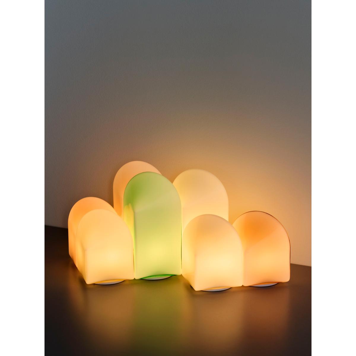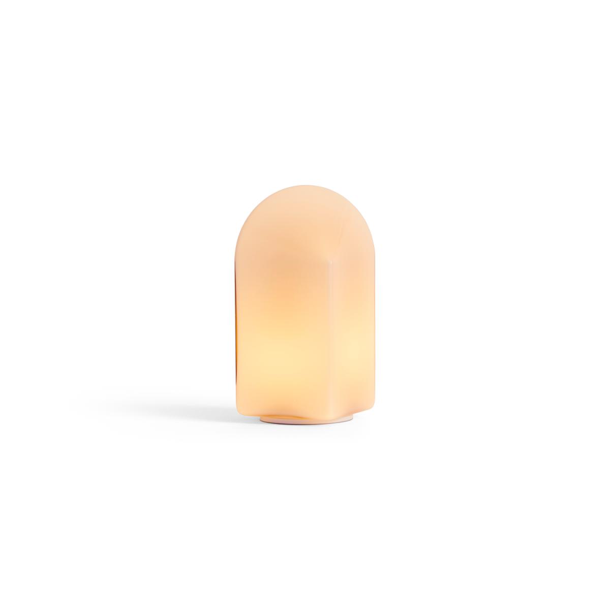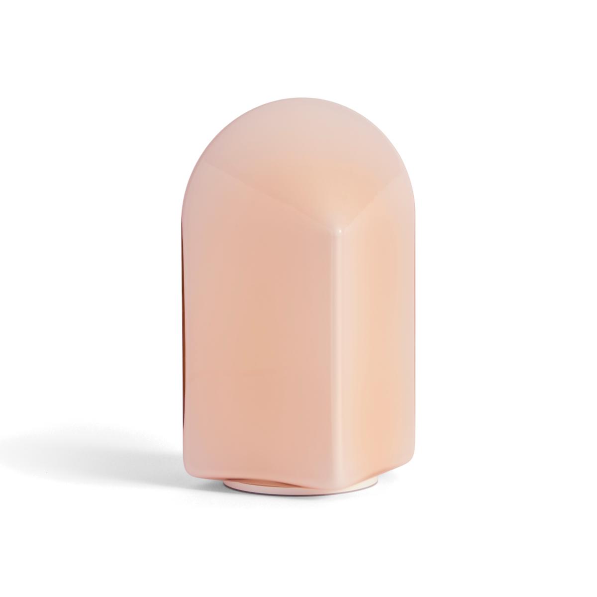 Parade Portable table lamp 24 cm from HAY is designed by Viola Heyn-Johnsen and Jonas Trampedach. The lamp has a unique geometric shape, with a square base and arched top, and is made of coloured glass with a hidden light source. The lamp lasts 10 hours on a full charge with USB-C and is IP44 rated so you can have ambient lighting both indoors and outdoors.