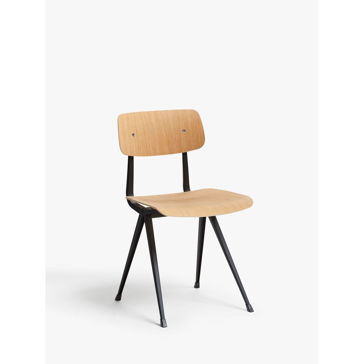 Originally created by Friso Kramer and Wim Rietveld while working at Ahrend, the Result dining chair has been relaunched by HAY together with Ahrend. Its organic, lightweight shape highlights a sheet steel construction with an oak veneer back rest and seat for a robust finish. Simple in design, its timeless and functional silhouette will tie seamlessly into dining and home office settings.