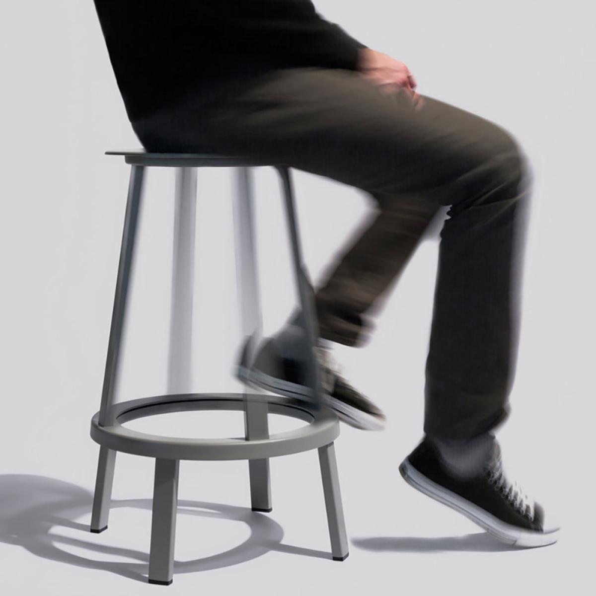 Inject practical style into your home with this Revolver Stool from HAY. Ideal for kitchen seating, itsslim profile echoes classic bar stool styling while a dished seat and curved edges add comfort to its design. The top section sits upon aluminium bearings meaning it can be rotated 360 degrees with its base remaining still; adding a modern touch to any room it is placed in. Available in three colours this stool is sure to be admired by guests to your home.