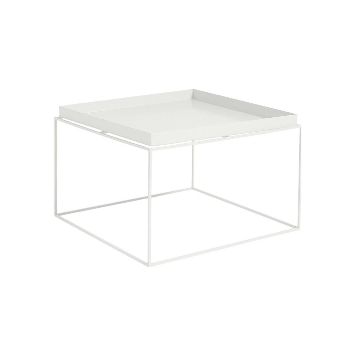 Add minimalistic style to your home with this Tray Coffee Table from HAY. A multifunctional designs sees a stylish removable serving tray create the surface of this table, meaning items that would be placed on a tray then onto the table can be transported with ease. Crafted from powder coated steel in three colours, it minimalistic hollow cube design is sure to bring a unique twist to any interior it is placed in.