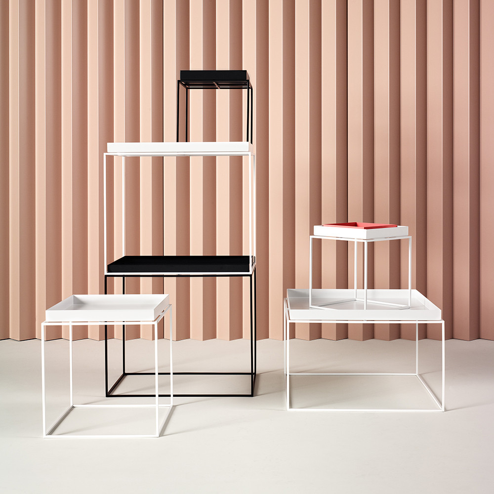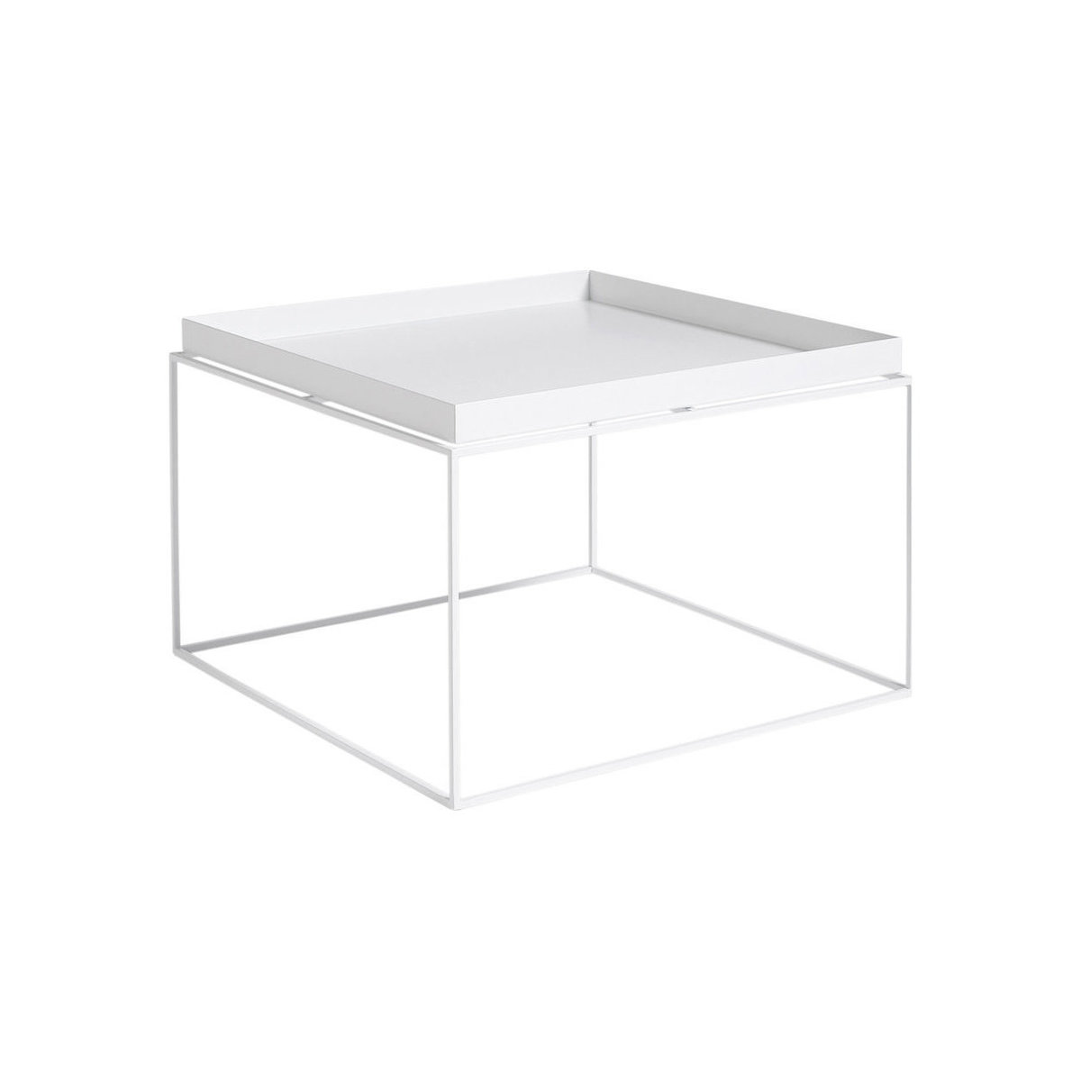 Add minimalistic style to your home with this Tray Coffee Table from HAY. A multifunctional designs sees a stylish removable serving tray create the surface of this table, meaning items that would be placed on a tray then onto the table can be transported with ease. Crafted from powder coated steel in three colours, it minimalistic hollow cube design is sure to bring a unique twist to any interior it is placed in.