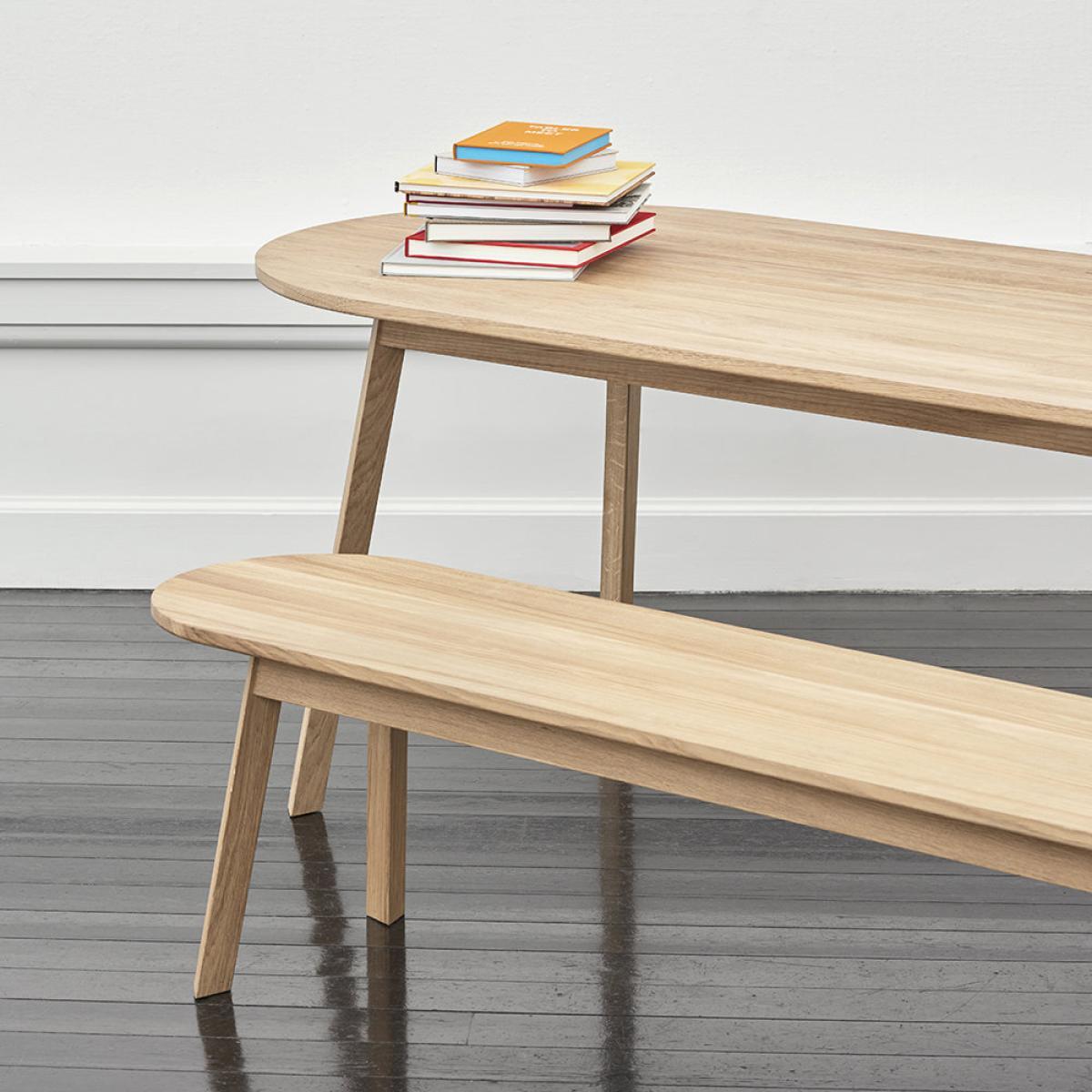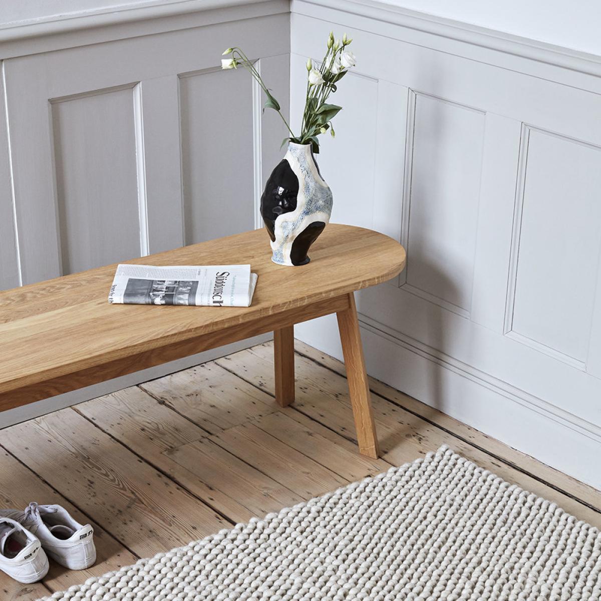 Inspired by the motivation to create more space around a circular table, the Triangle Leg bench is a versatile addition to any space. Designed by Simon Jones, the rectangular ends of this bench have been rounded to create a sociable seating solution. Crafted from solid oak with an oiled finish, it’s versatile style means the bench can be used just about anywhere.
