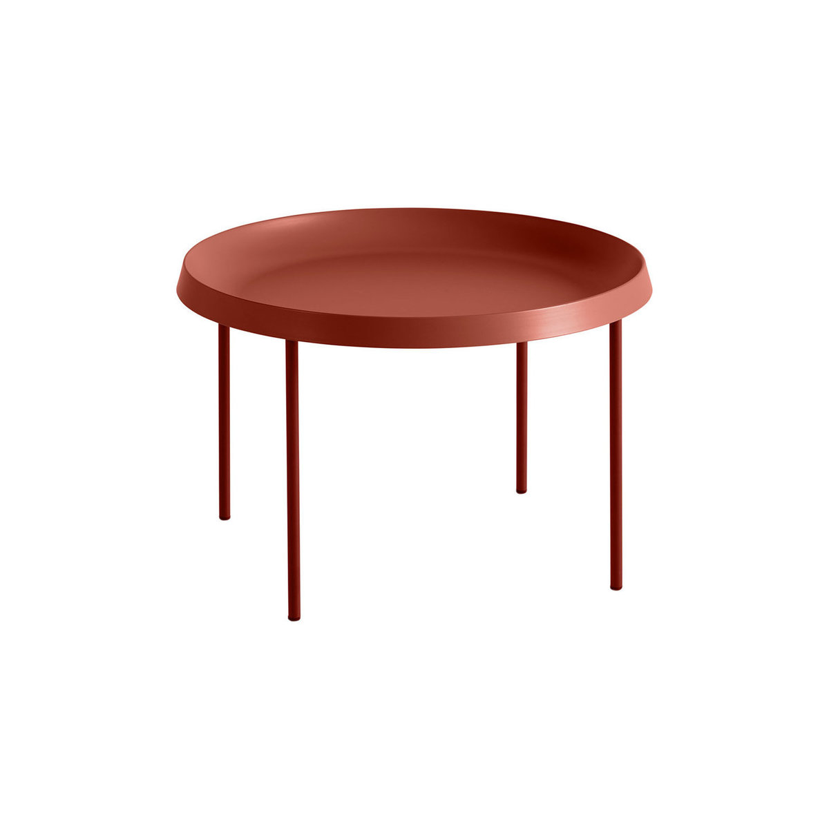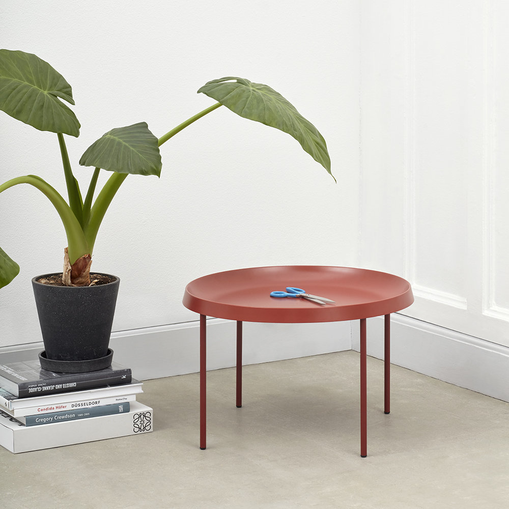 Add minimalist design to any contemporary setting with this Tulou coffee table from HAY. Inspired by the traditional tray table, this coffee table is comprised of two basic elements, a spun steel round tray with a lipped edge and a four-legged frame in tubular steel. Finished in an orange tone, this coffee table is a chic addition to any interior.