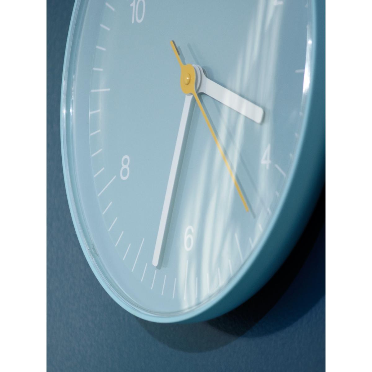 I love this wall clock for its clean, modern design and cheerful blue colour, which can inject a pop of colour into neutral or monochromatic interiors. Its simple, uncluttered face makes it versatile and suitable for a variety of spaces-from kitchens and home offices to living rooms and bedrooms. A practical styling tip is to pair it with minimalist or Scandinavian decor, where its sleek lines and subtle hue will complement other soft furnishings. For added visual interest, consider hanging it alongside other geometric or colourful accessories, but keep everything else understated so the clock remains its focal point. Its size makes it a functional piece that won't dominate the wall but still provides a clear, easy-to-read time.