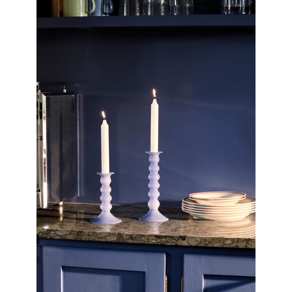 I really like this candle holder for adding a touch of colour and shape to various interiors. Its medium size makes it versatile for both table centrepieces and shelf displays. The Jade blue hue brings a calming quality that works particularly well in minimalist, Scandinavian, or modern boho spaces. For styling tips, consider pairing it with contrasting textures like natural wood or matte ceramics to highlight the glossy glaze. It’s also great for creating layered lighting - place it alongside other candle holders of different heights for a curated, relaxed look. Keep in mind it can work equally well on a dinner table, sideboard, or coffee table to add subtle colour and visual interest.