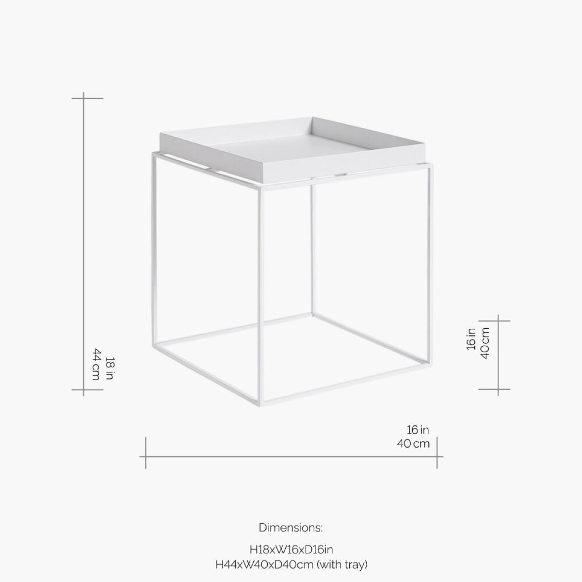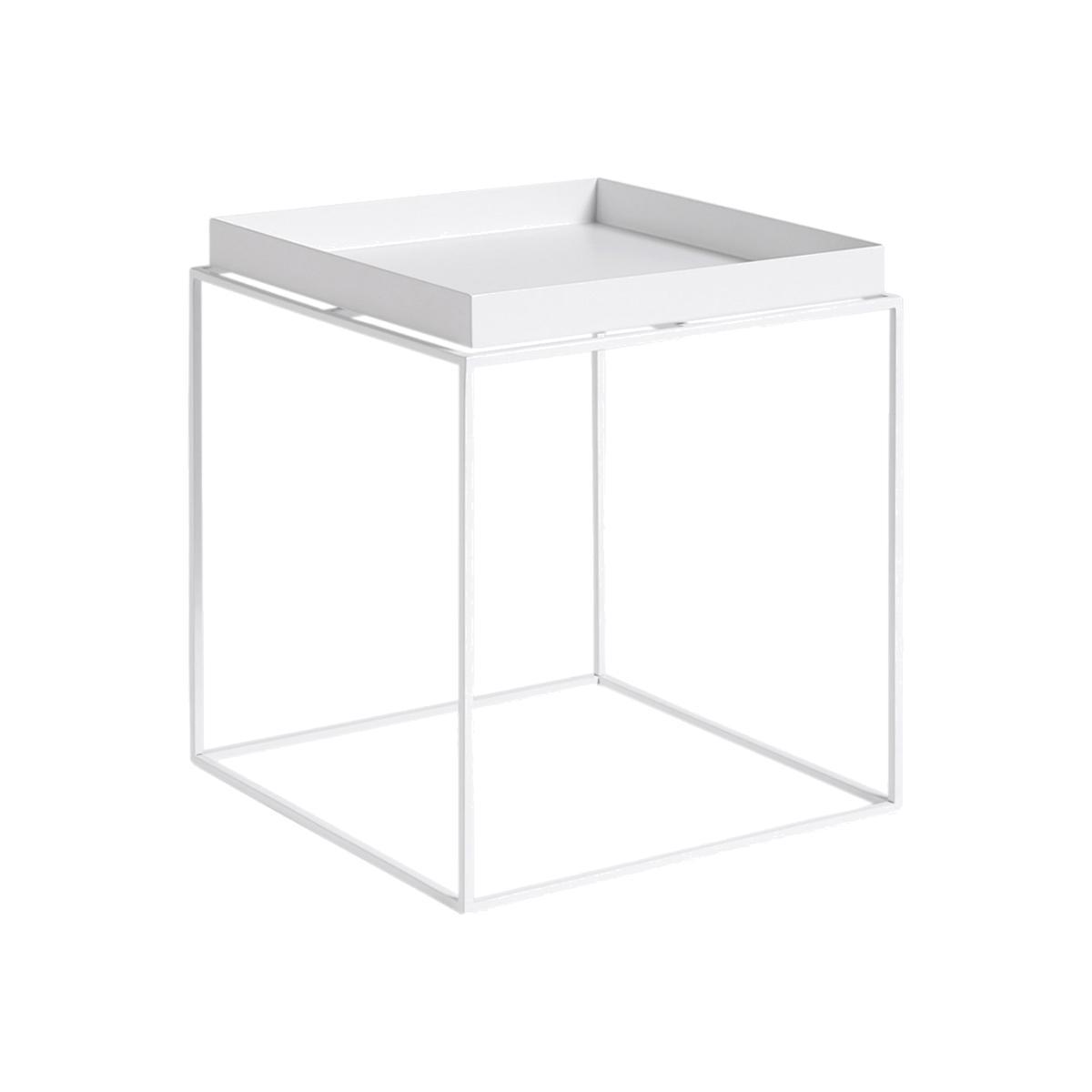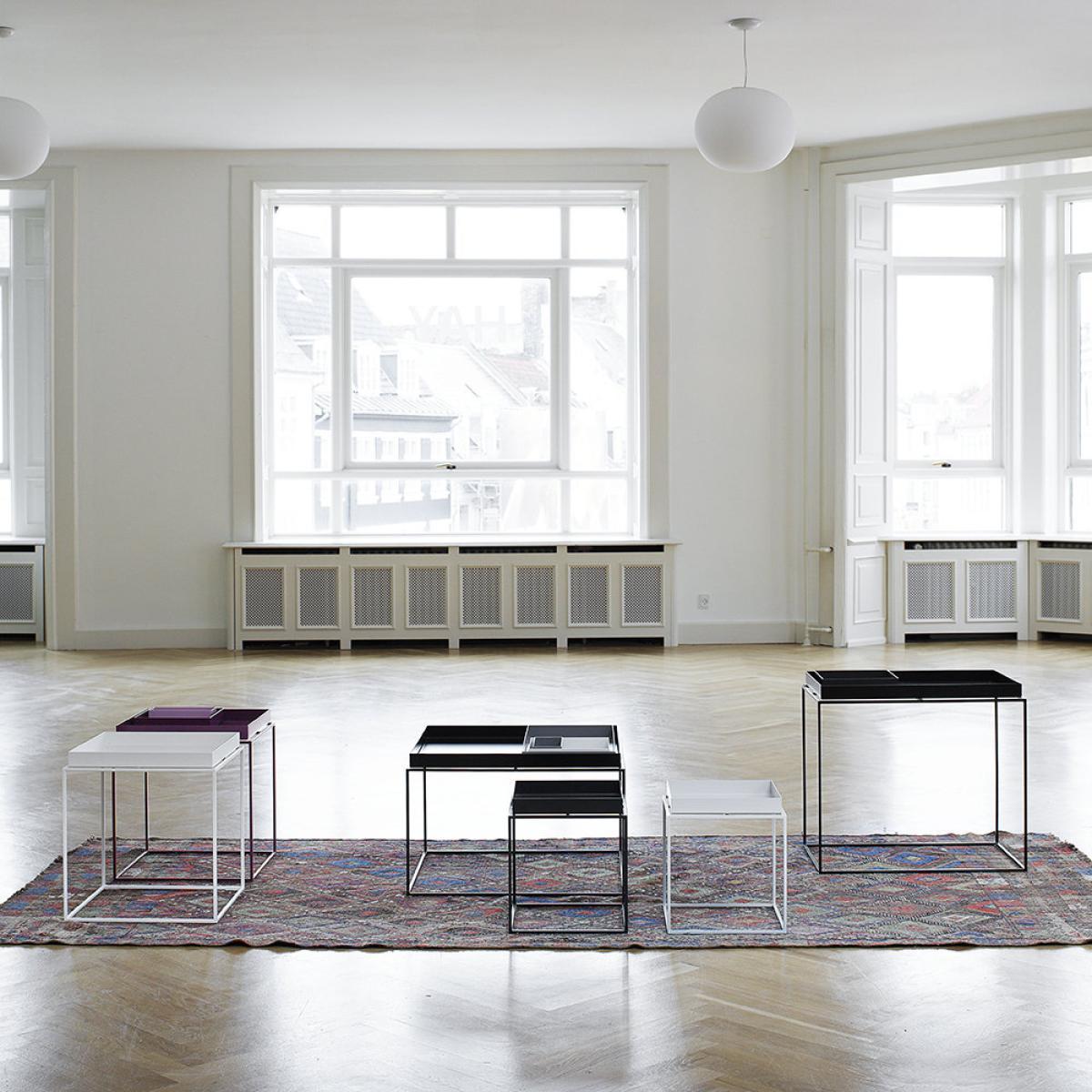 Bring an artistic twist to your home with this Tray Table from HAY. Shaped in the silhouette of a cube its unique hollow design has been made with powder coated steel and is sure to be admired by guests to your home. Its table top has been designed to also function as a serving tray; removing with ease to simplify moving object to and from the kitchen. Available ina variety of colours this table makes a fabulous addition to any home.