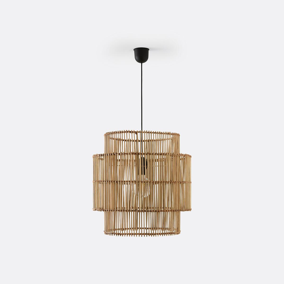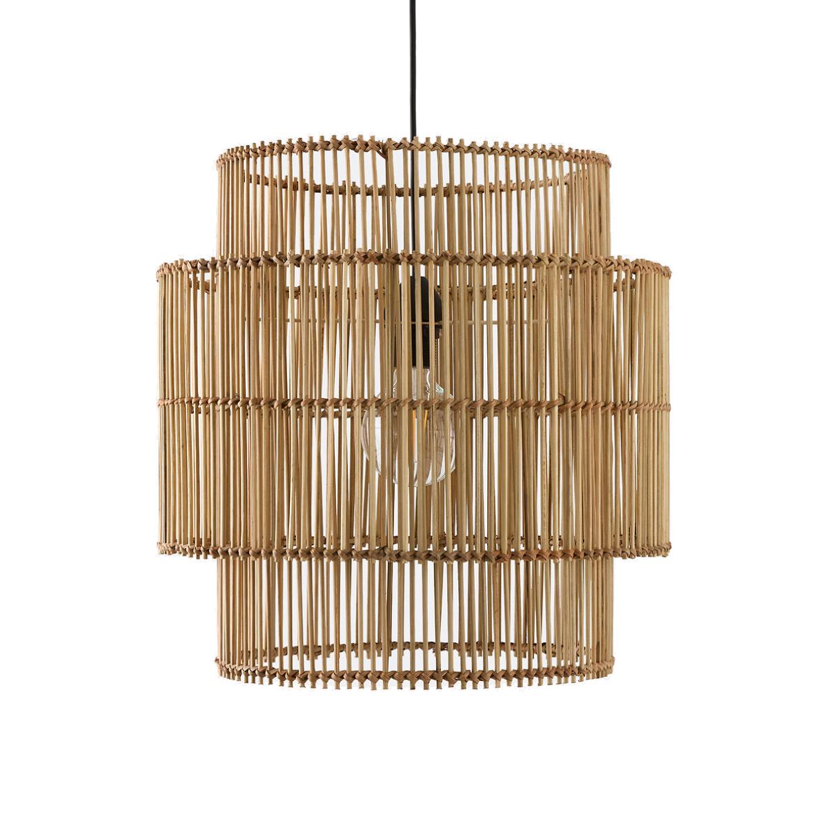 An artisanal design, made from bamboo. The Haya pendant light diffuses a soft and warm light. Even when switched off, it will decorate your interior. Product Details • Bamboo shade • Iron structure • Supports E27 bulb (not supplied) • This product is sold non-electrified. Find the Baulind electric cable sold on the site. Dimensions • Diameter: 46cm • Height: 46cm. Dimensions and weight of parcel1 parcel • L48 x H48 x D48cm • 3.5kg