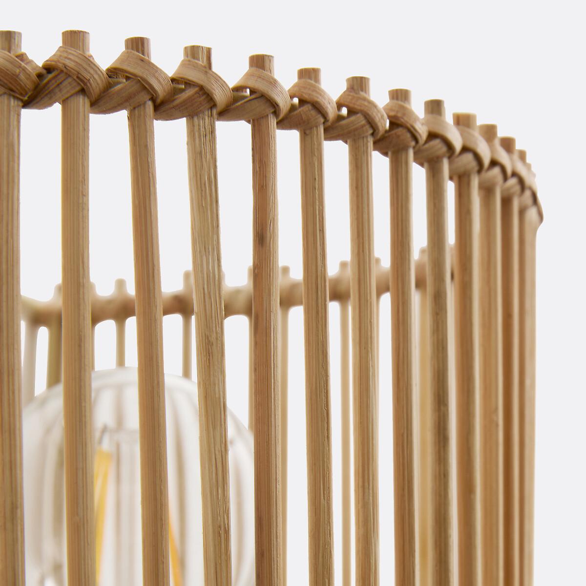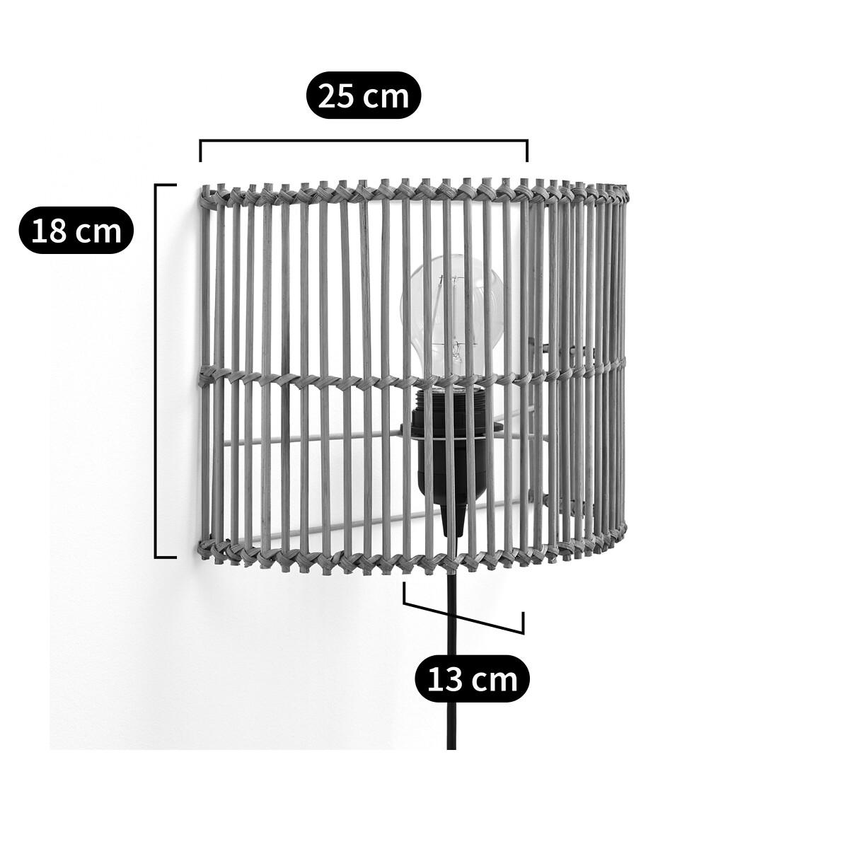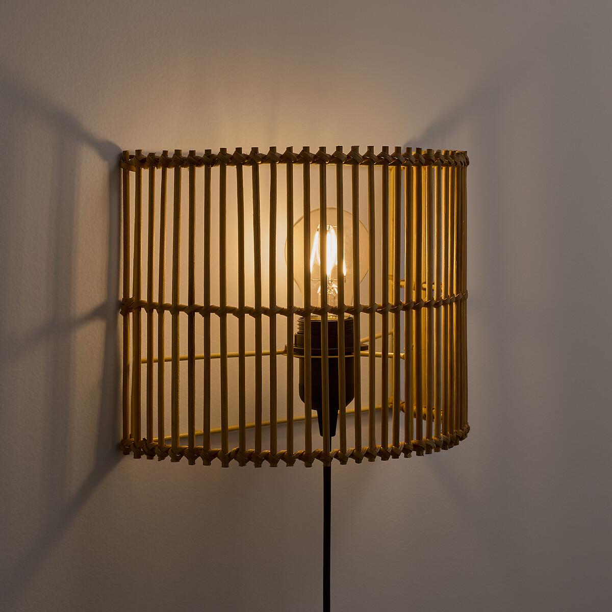 An artisanal bamboo creation. The Haya wall light diffuses a soft and warm light thanks to the plant-like appearance of bamboo. Even when switched off, it will decorate your interior. Product Details • Bamboo on iron structure • Support for E14 socket (bulb not included) • This product is sold non-electrified. Find the Baulind electric cable sold on the site. Dimensions • Length: 25cm • Height: 18cm • Depth: 13cm. Dimensions and weight of parcel1 parcel • L26 x H20 x D15cm. 0.9kg