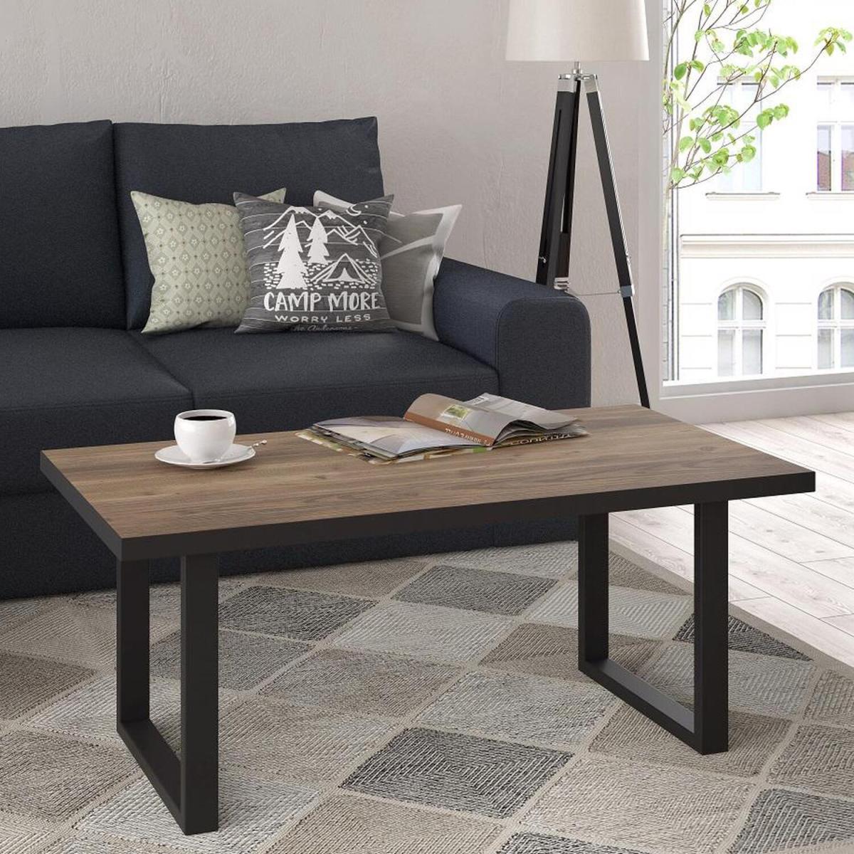 PMatt Black and Dark Alpine Spruce Industrial Style Coffee tablepp. This is an industrial style coffee table featuring Matt black frame and Alpine spruce table top.pp. Beautifully unique coffee table which features alpine spruce tabletop with matt black frame will look stunning in any style of interior decor.pp. Ideal for a living room or guest room, this coffee table is an attractive addition to any room.pp. Delivered flat-packed for Home Assembly.pp. Product Featurespul li Colour Matt Black Alpine Spruceli li Material MDF Chipboardli li Self Assembly requiredliulp. Product Dimensionspp Width 110cm x Height 45cm x Depth 60cmp