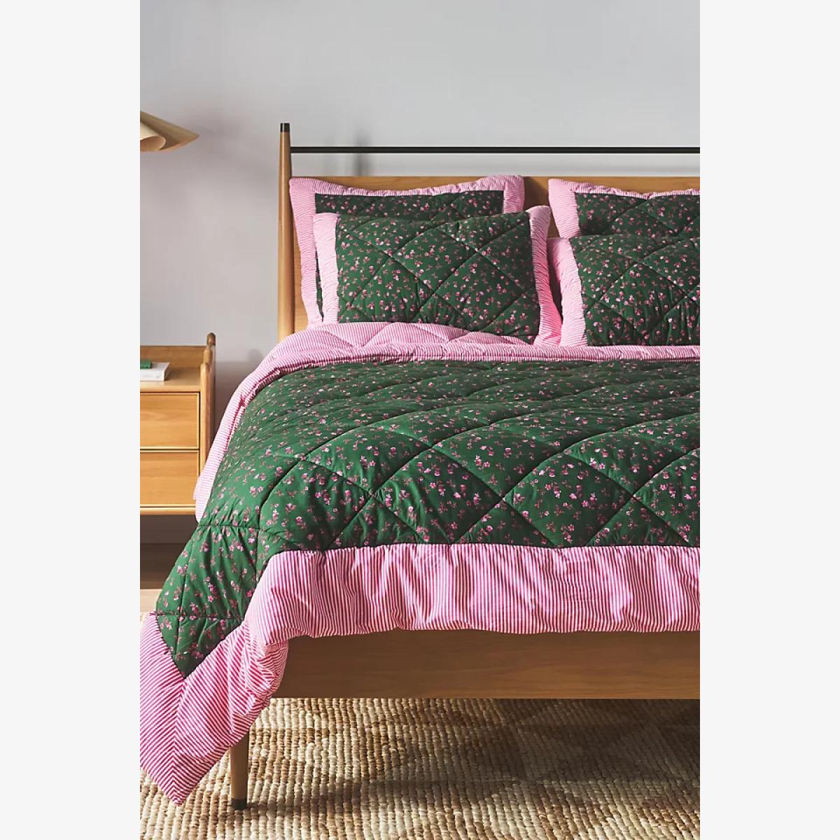 Framed by a clean and classic border, vibrant patterns infuse electrifying liveliness into your bedroom, all while upholding an aura of sophisticated elegance. Hayden Cotton Percale Quilted Bedspread by Anthropologie in Green Size: Dbl quilt