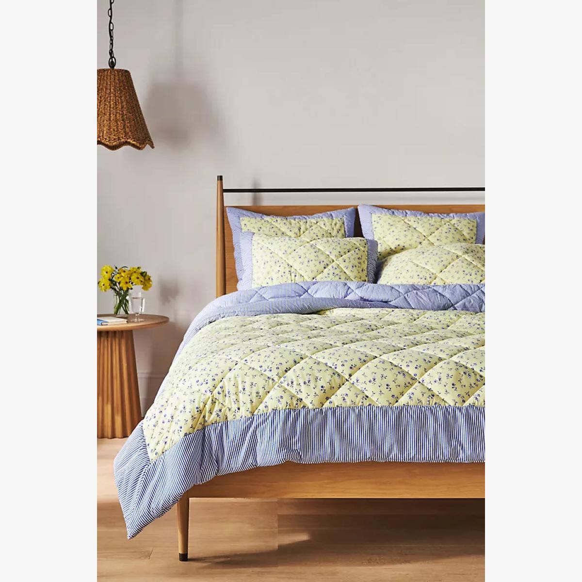 Framed by a clean and classic border, vibrant patterns infuse electrifying liveliness into your bedroom, all while upholding an aura of sophisticated elegance. Hayden Cotton Percale Quilted Bedspread by Anthropologie in Yellow Size: Eu kng qlt