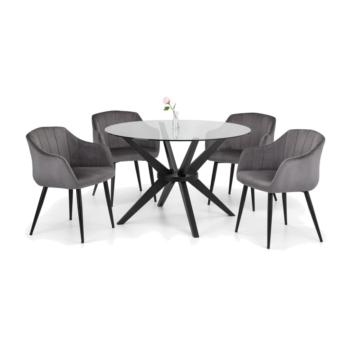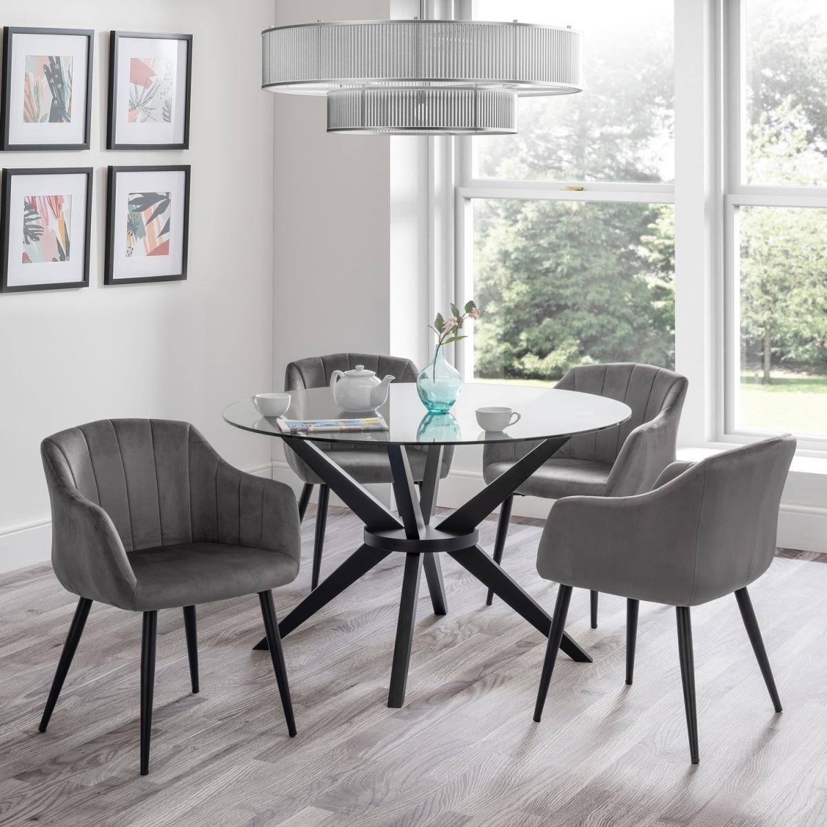 The Hayden Round Table combines a sleek, tempered glass top with a contemporary black solid Beech base to create a statement look in your home. Perfect for drinks, dinner, or catching up with friends over a coffee, Hayden is a versatile piece that suits various styles of decor. matched with Hobart Chairs.