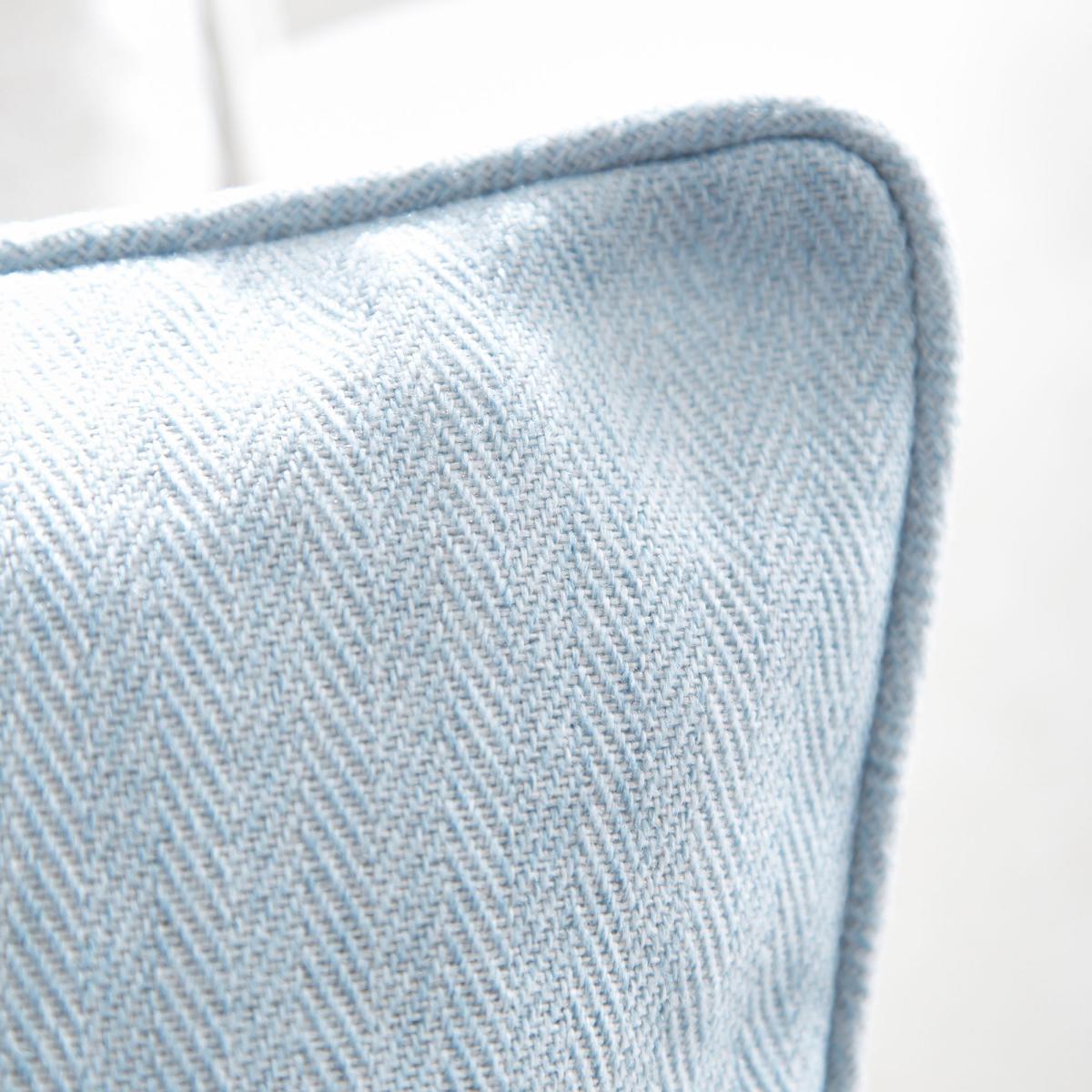 Designed with a Herringbone texture, this plain duck-egg blue cushion is finished with piped edging and features a machine-washable removable cover.