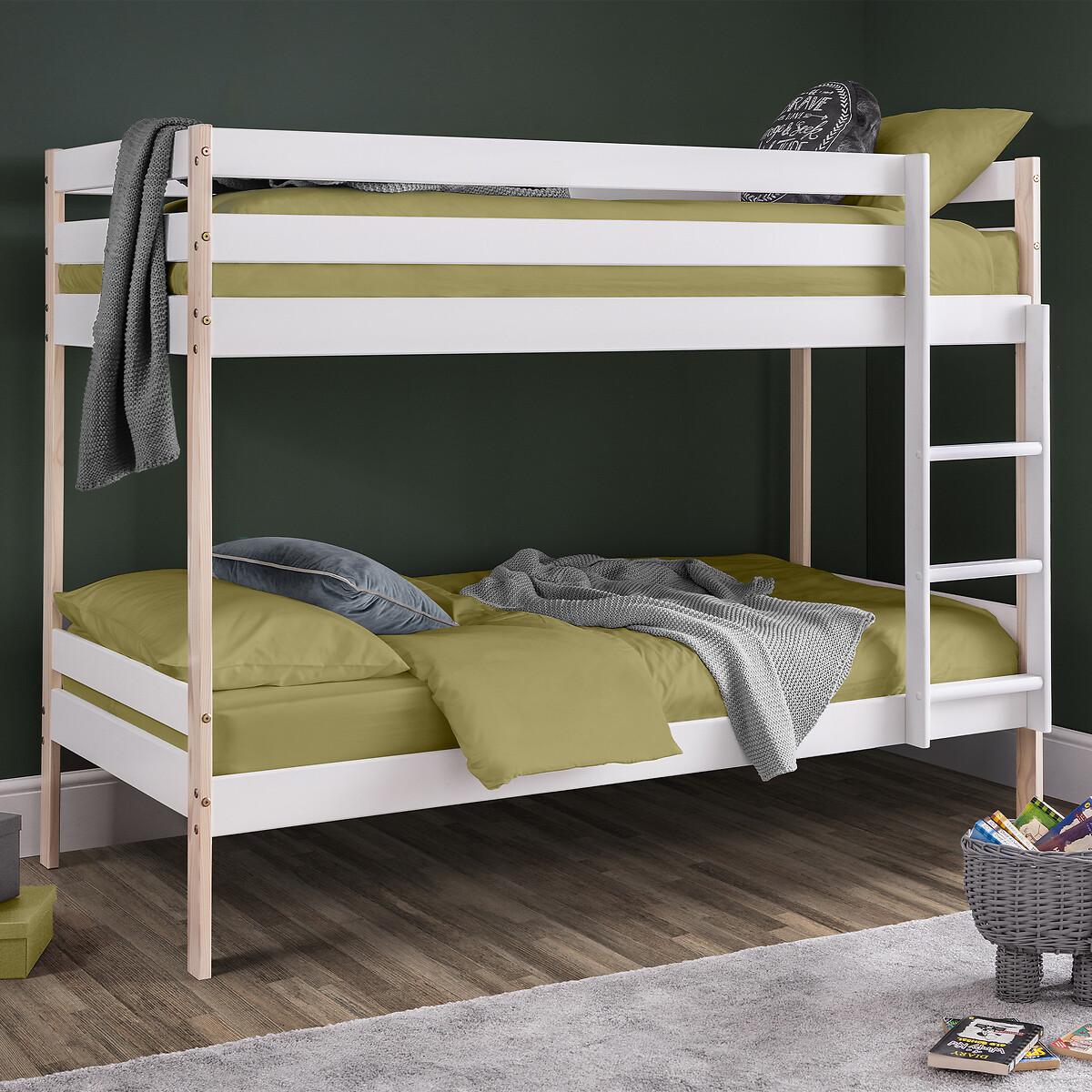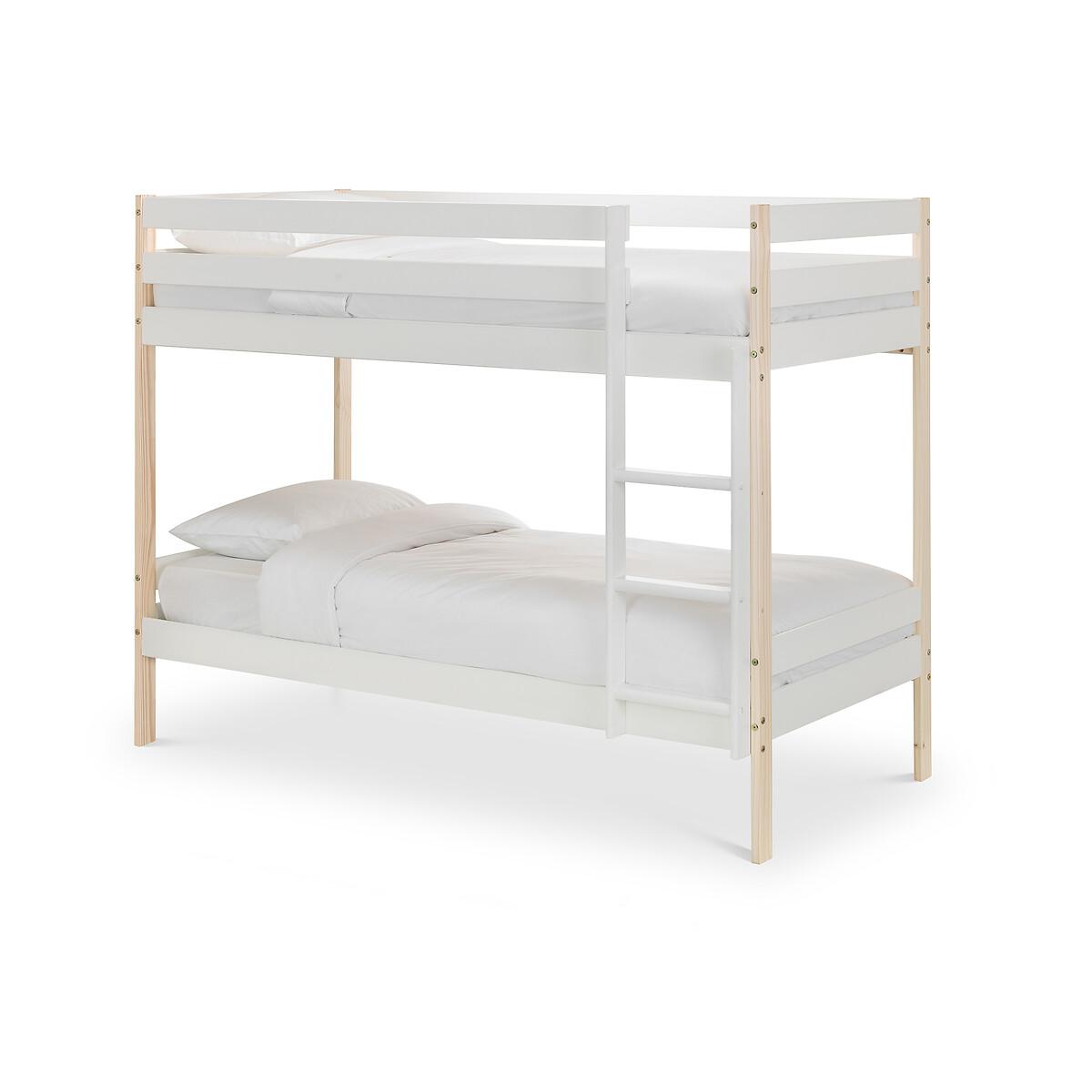 The Hayden Bunk offers a classic design in a 2-tone white and pine finish. Perfect for shared rooms or sleepovers, the Hayden saves valuable activity space by only taking the space of a single bed, making it ideal for smaller bedrooms. Crafted using solid pine, this sturdy design suits any styles of interior. Pair up with the Hayden Trundle for additional storage space or an extra bed for sleepovers that can be stored under the bunk neatly when not in use. Product details• Stunning 2-tone white and wood finish• Constructed from solid pine and MDF• Assembly required• Fixings included• Max weight capacity - 12 stone• Compatible with Standard UK single 90 x 190 cm• Mattress not included• Maximum mattress height - 20cm• 12 month product guarantee• Trundle sold separately. Composition - 90%Pine and 10%MDFOverall product dimensions 195 cm x 153 cm x 96 cm , Weight - 61 KGDistance Between Bunks - 75 cm. Top of side rail to floor - 36/123 cm. Bottom of side rail to floor - 25/112 cm Guard rail height - 30 cm Distance from floor to top of ladder - 111 cm Package Dimensions:Package Dimension 1 - 197 cm x 47 cm x 17 cm, Weight 61 KGPackage Dimension 2 - 200 cm x 48 cm x 12 cm, Weight 35 KGPlease note: this product cannot be be delivered to all Offshore Islands Northern Ireland or Republic of Ireland. This product will be dispatched by one of our trusted suppliers. You’ll be contacted by their selected courier about your delivery.