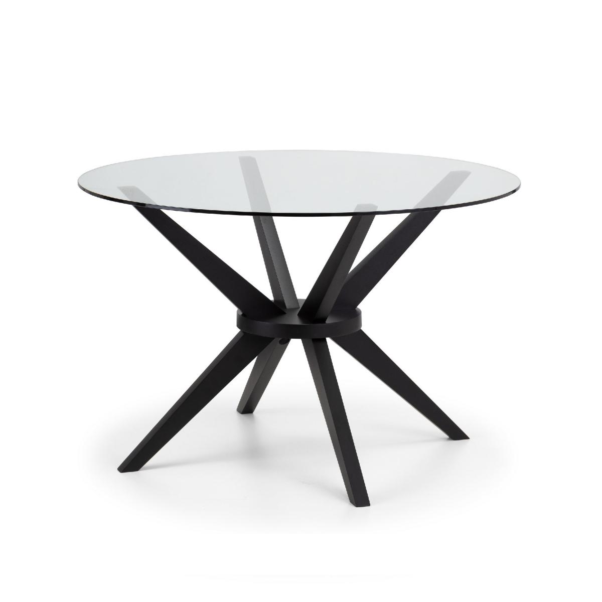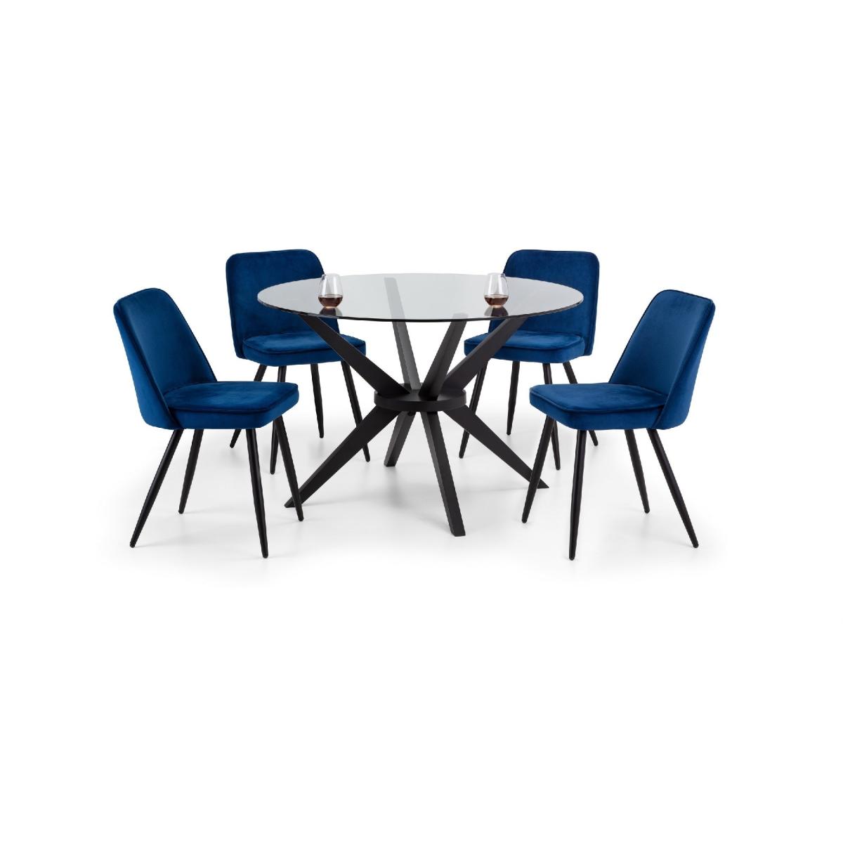 Hayden Round Glass Top Dining Table with 4 Burgess Chairs Blue