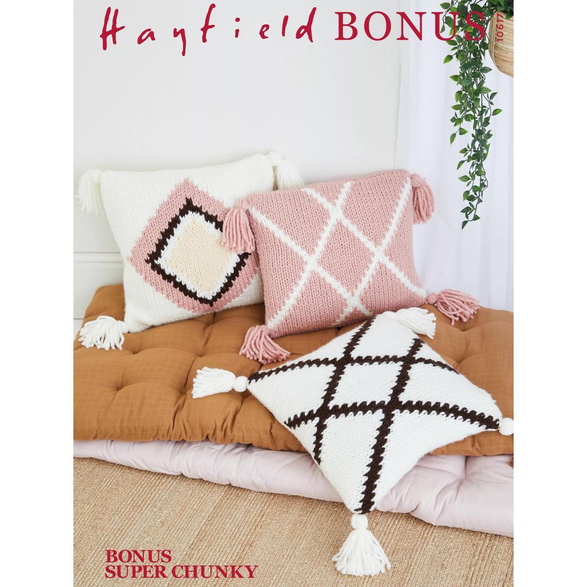 Hayfield Diamond Tasseled Cushions Knitting Pattern