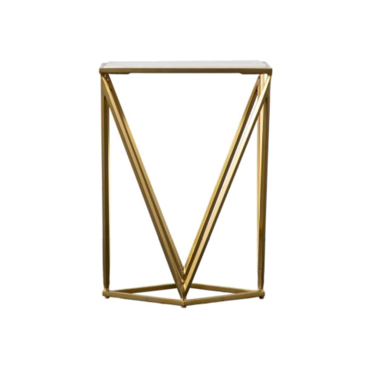 Add a touch of Luxe to a room with this side table which features an eye-catching geometric base in a brushed brass finish, paired with a white marble top. The table is also available with a black finish to the base. Material:Marble. Colour/Finish: Gold.