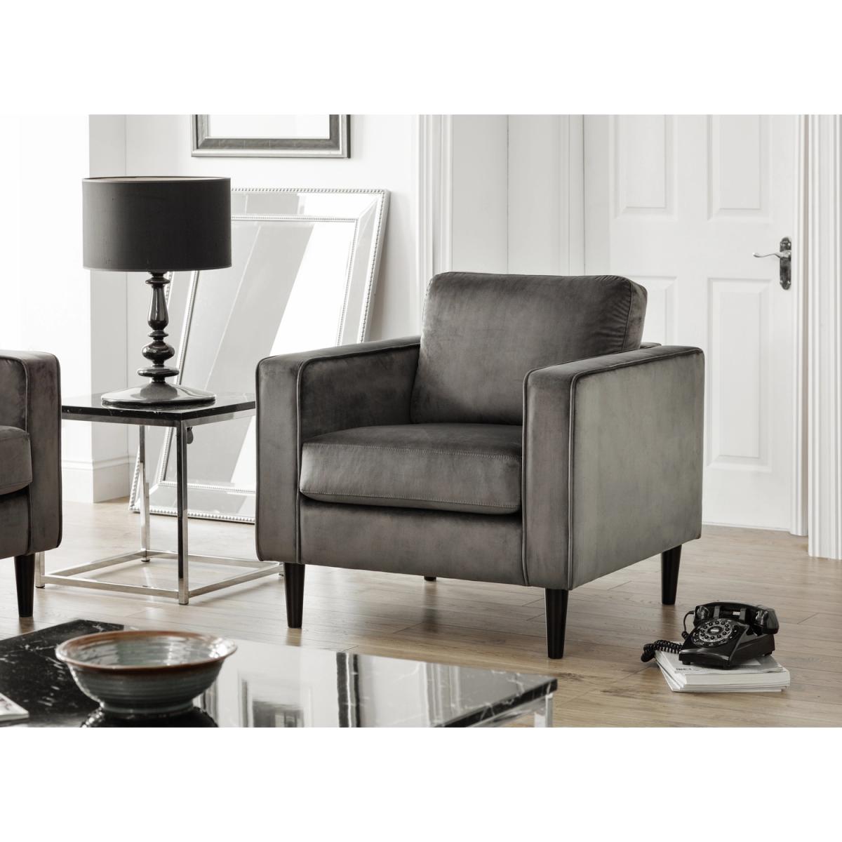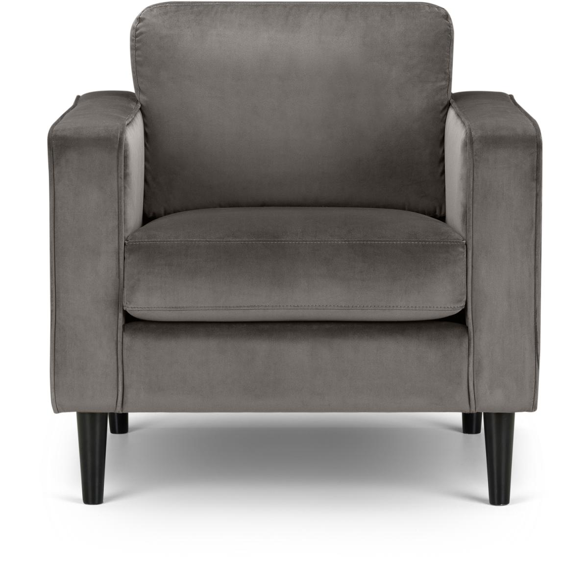 The Hayward Armchair will add a modern touch to any home. Finished in an elegant and luxurious deep pile grey velvet fabric, this armchair features a padded frame allowing you to relax in style. Accompanied by two leg colour options - black or light oak, this armchair is the perfect design for a range of home decor. Part of the Hayward Upholstery Collection from Julian Bowen.