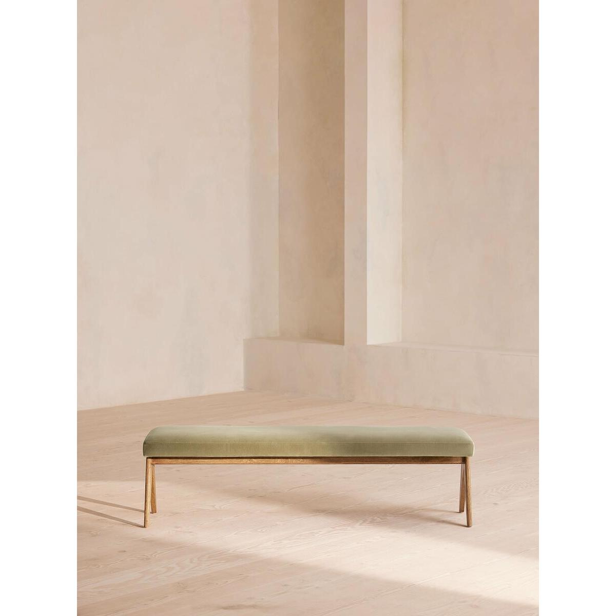 I love the Hayward Bench in velvet for its sleek, understated elegance and the rich texture it adds to a space. Its versatile Lichen colour works particularly well in contemporary interiors or layered classic schemes, offering a subtle pop of colour without overwhelming. It’s perfect as a statement piece in an entryway, under a large window, or as extra seating in living or bedroom areas. For styling, consider pairing it with tactile cushions or placing it alongside a small side table for a functional yet sophisticated setup. Its slender, tapered legs lend a lightness that complements minimalist aesthetics, but it can also anchor a more eclectic space when paired with other textured or colour-rich furnishings.