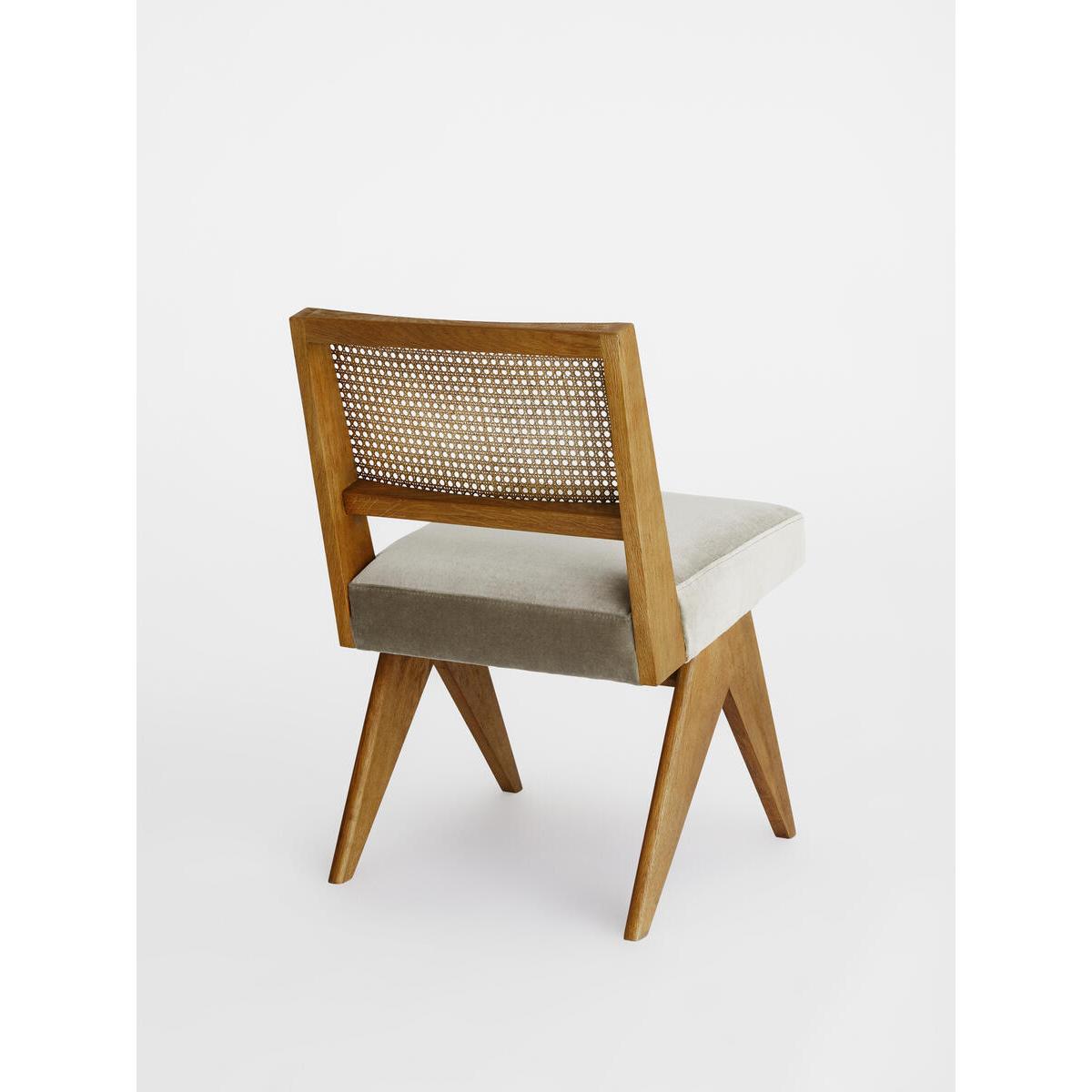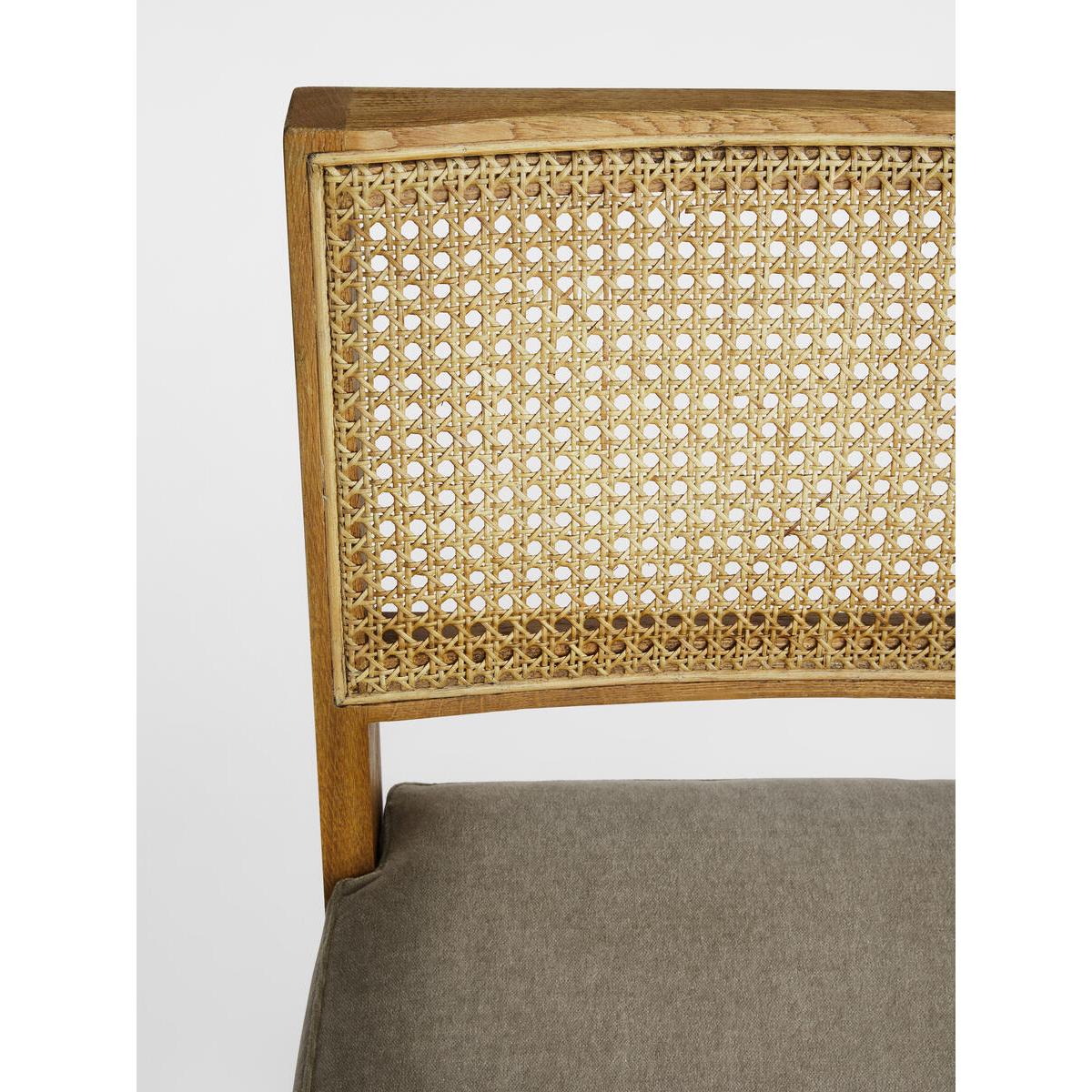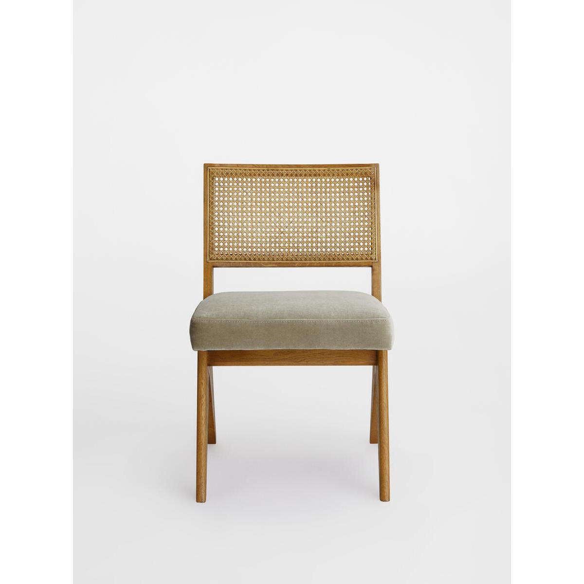 Originally designed for 180 House, our Hayward dining chair isbuilt onto a solid oak frame with a wire-brushed finish. It has anatural woven cane back and is fitted with a padded, soft ferncushion for comfort. Solid oak chair. Wire-brush finish. Natural cane back. Padded seat cushion. Fern velvet colourway. Inspired by 180 House.