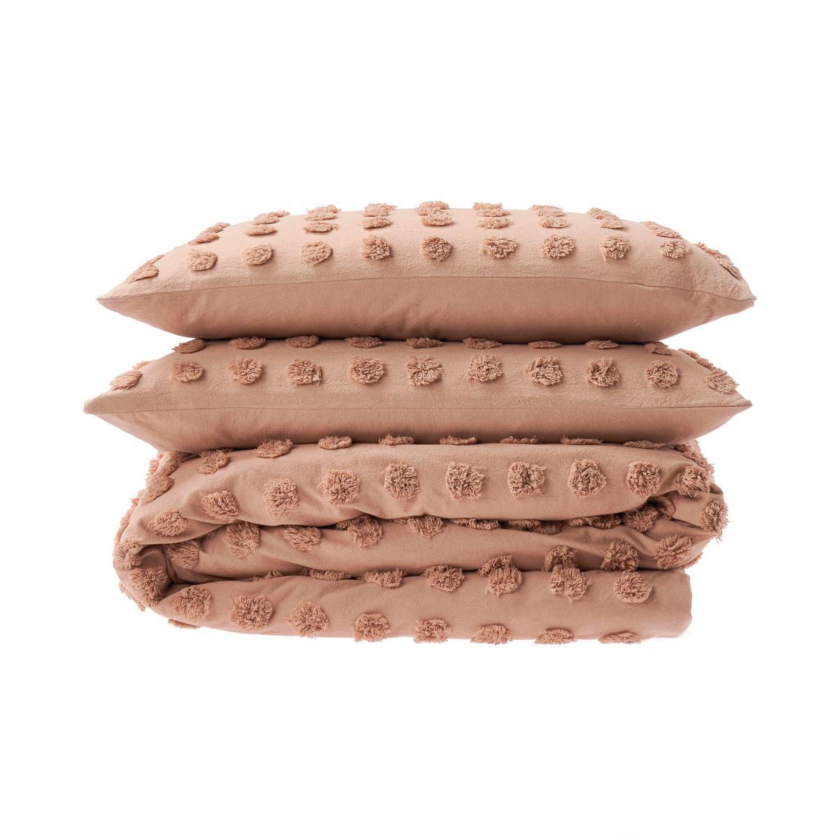 This pillowcase pair features a tufted polka-dot made from 100% cotton. Being made from cotton, the design is both durable and soft. These pillowcases have an envelope opening. Care Instructions:.