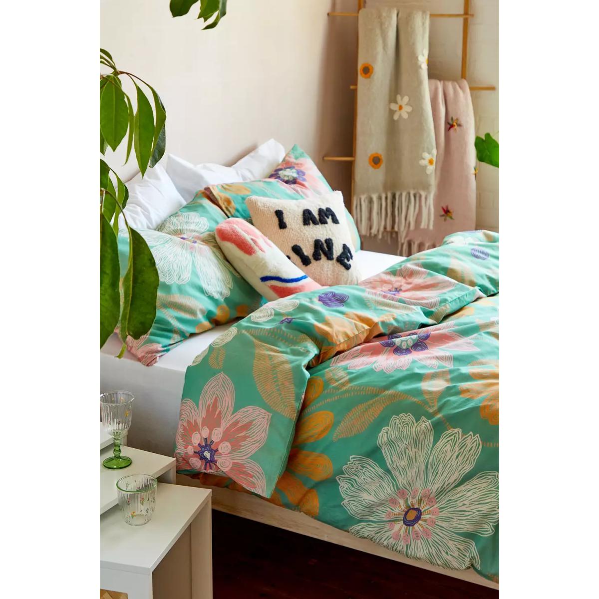 Hazel Floral Duvet Set - Light Green King at Urban Outfitters