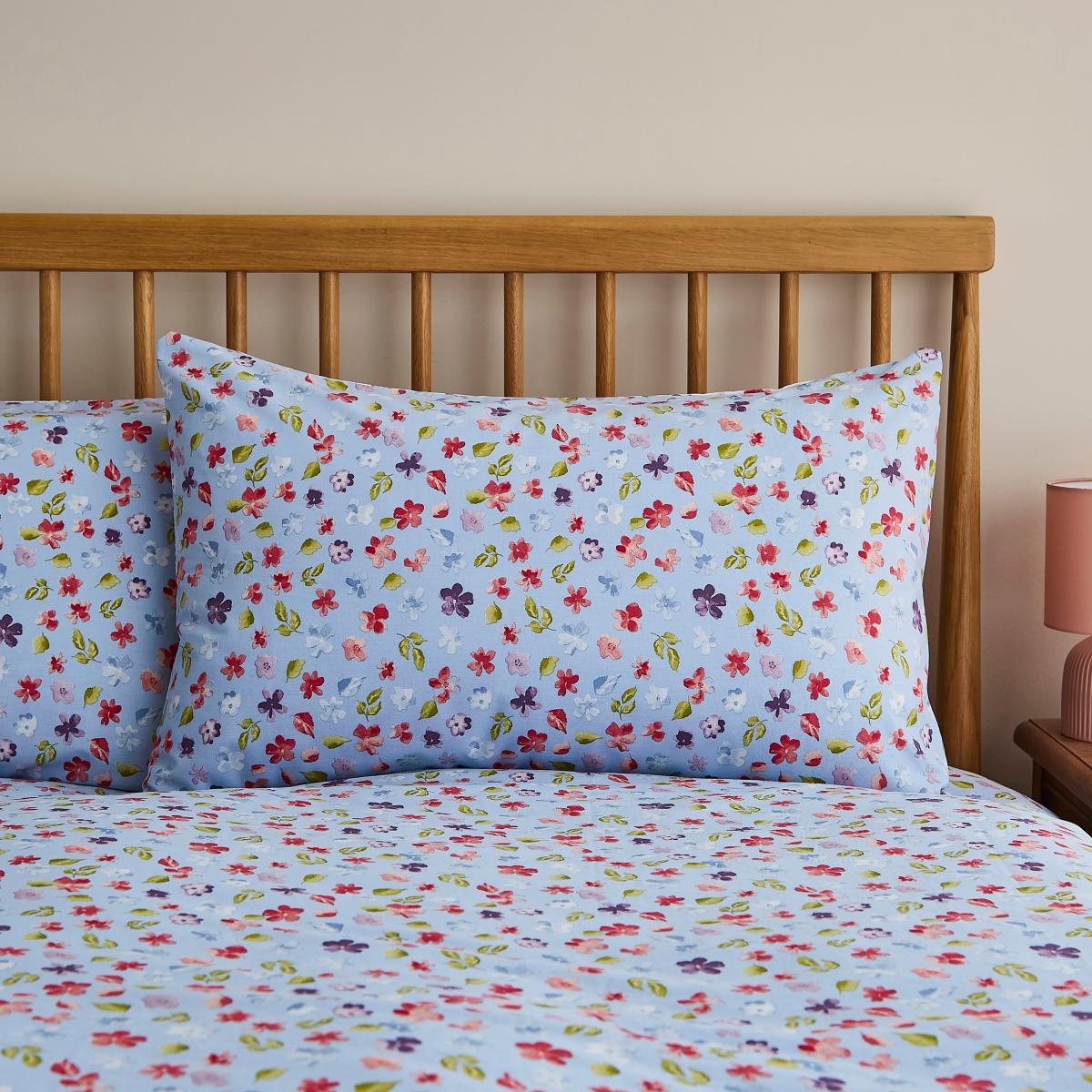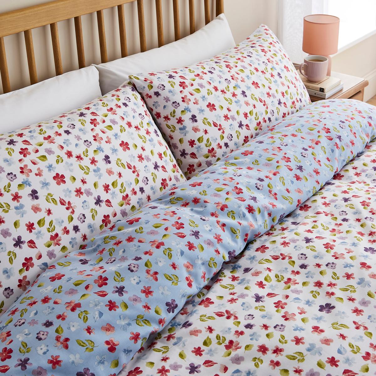 * Standard Pillowcase(s) included * Super soft and durable polycotton composition * Eyecatching floral design * 144 Thread Count * Machine Washable Add a fresh and uplifting touch to your bedroom with the Hazel Floral duvet cover set. Featuring a vibrant floral pattern, this set comes in a choice of a crisp white or deep blue base, allowing you to tailor the look to your style. The reversible design gives you two stunning options in one, making it effortless to refresh your space. Crafted from a soft yet durable polycotton blend, this bedding offers easy care and quick drying properties while maintaining a light and breathable feel. Complete with a button closure for a secure fit, this set is perfect for adding a breezy, nature-inspired vibe to your home. This product is certified to OEKO-TEX® STANDARD 100, the original safety standard for everyday confidence. To offer full visibility, the production stages throughout the supply chain can be traced.